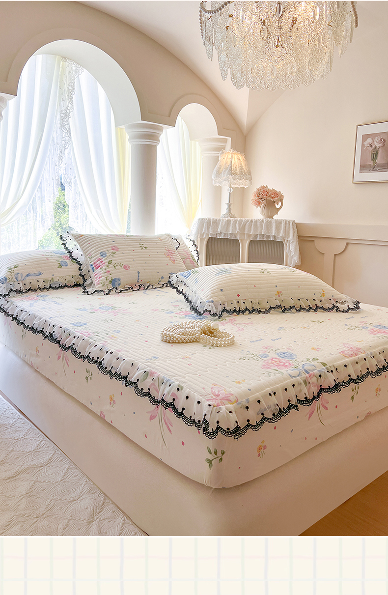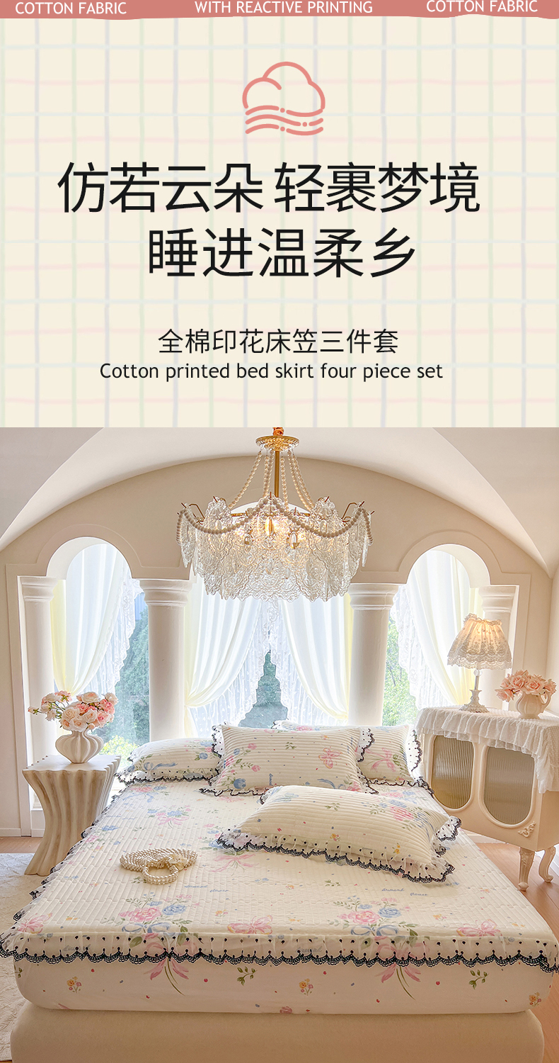 (总)麒豆豆 2025新款全棉蕾丝边床裙款床笠-晨暮花间,晨暮花间-绯红,晨暮花间-粉色,晨暮花间-麦绿,晨暮花间-米色,晨暮花间-浅紫,晨暮花间-雾蓝