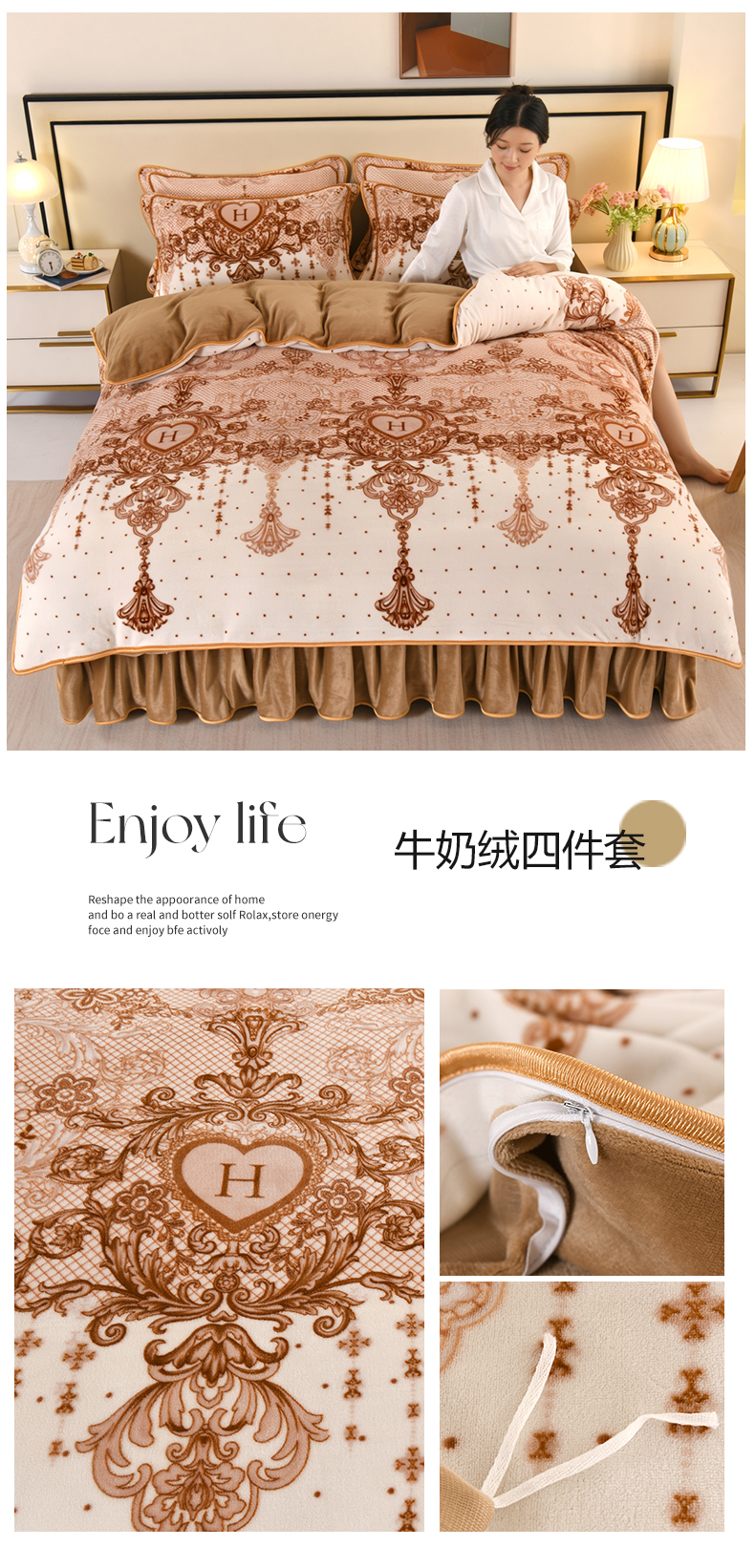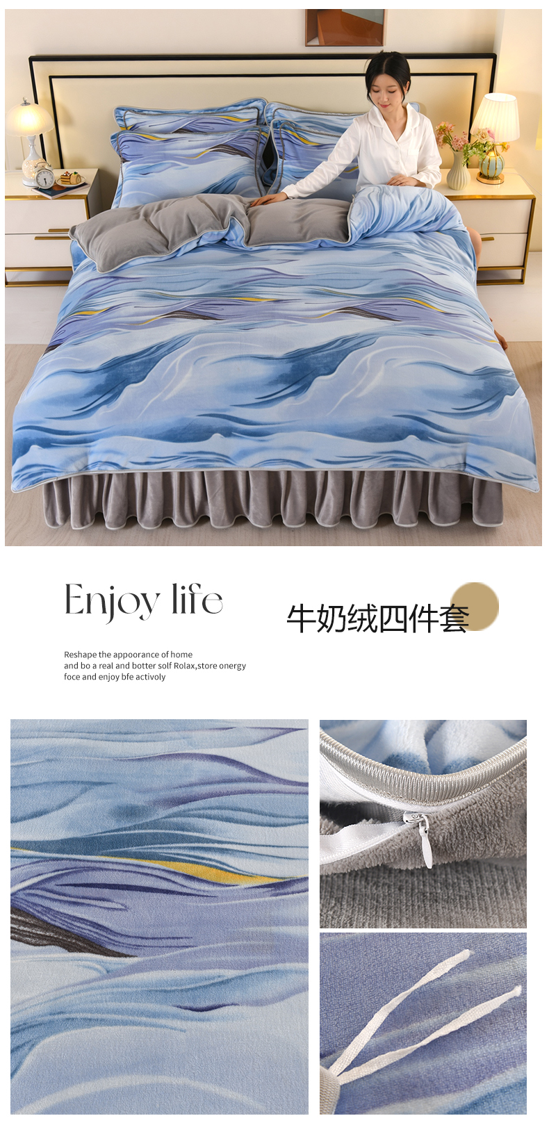 栩裕纺织 2025新款230高克重牛奶绒法莱绒印花四件套-直播热款8斤半 北欧风情绿