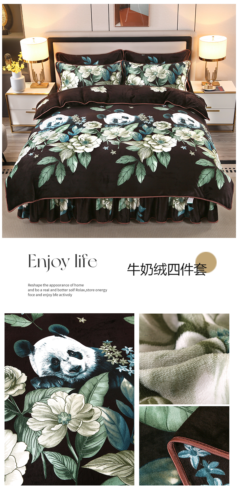 商品名称:栩裕纺织 2025新款230高克重牛奶绒法莱绒印花四件套-直播热款8斤半 北欧风情绿