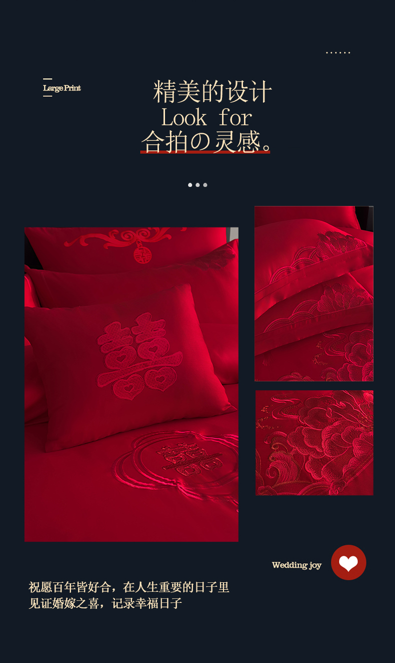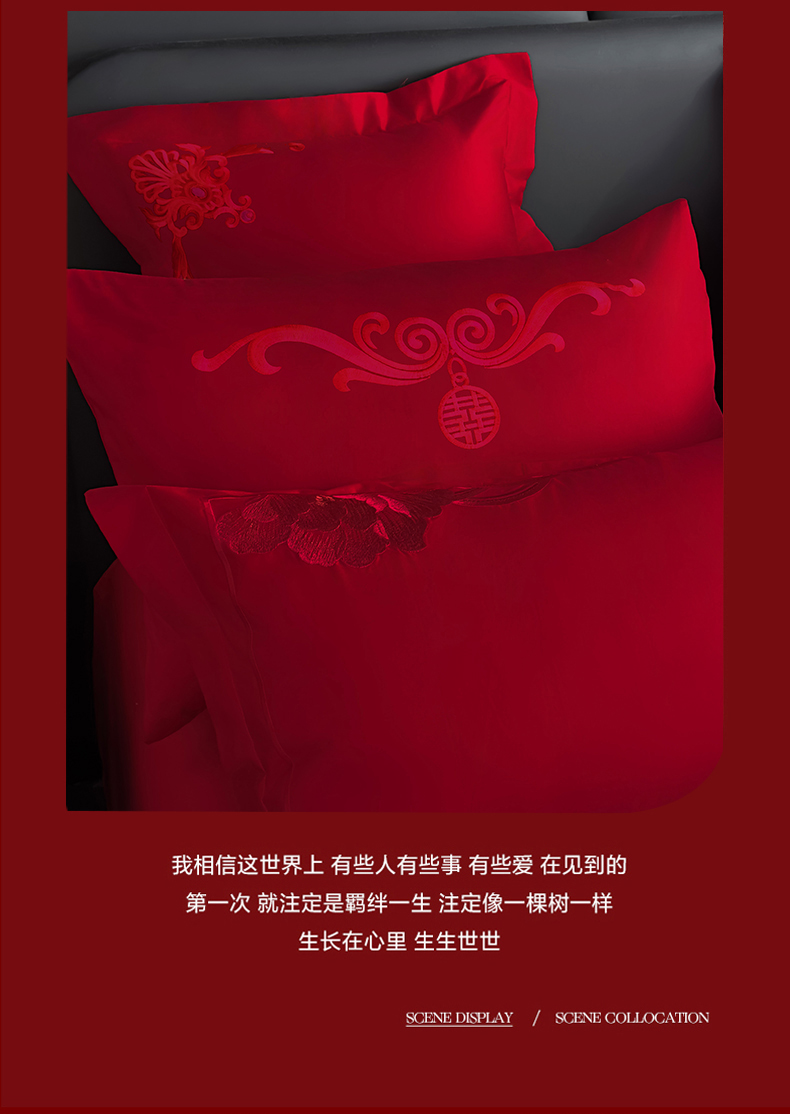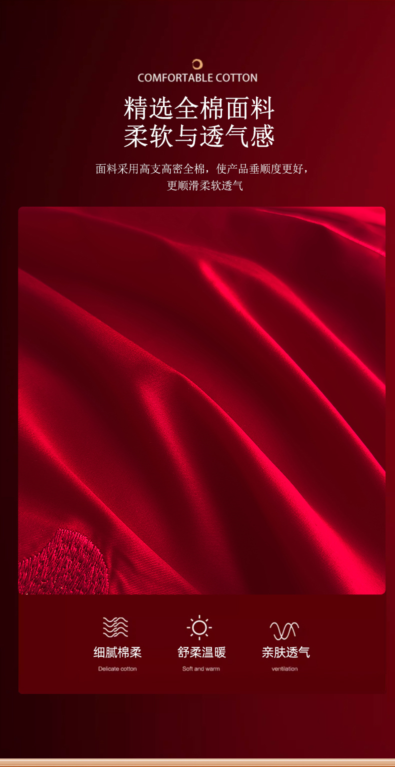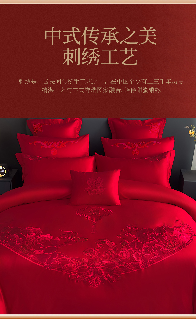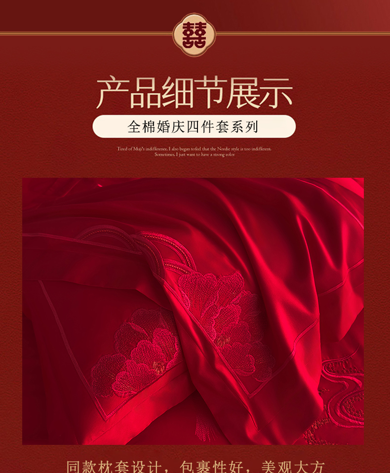 商品名称:娇伊诗婚庆 2025新款刺绣工艺全棉婚庆四件套系列 幸福美满红