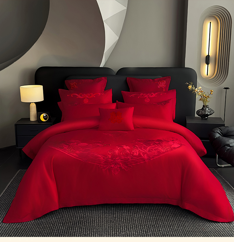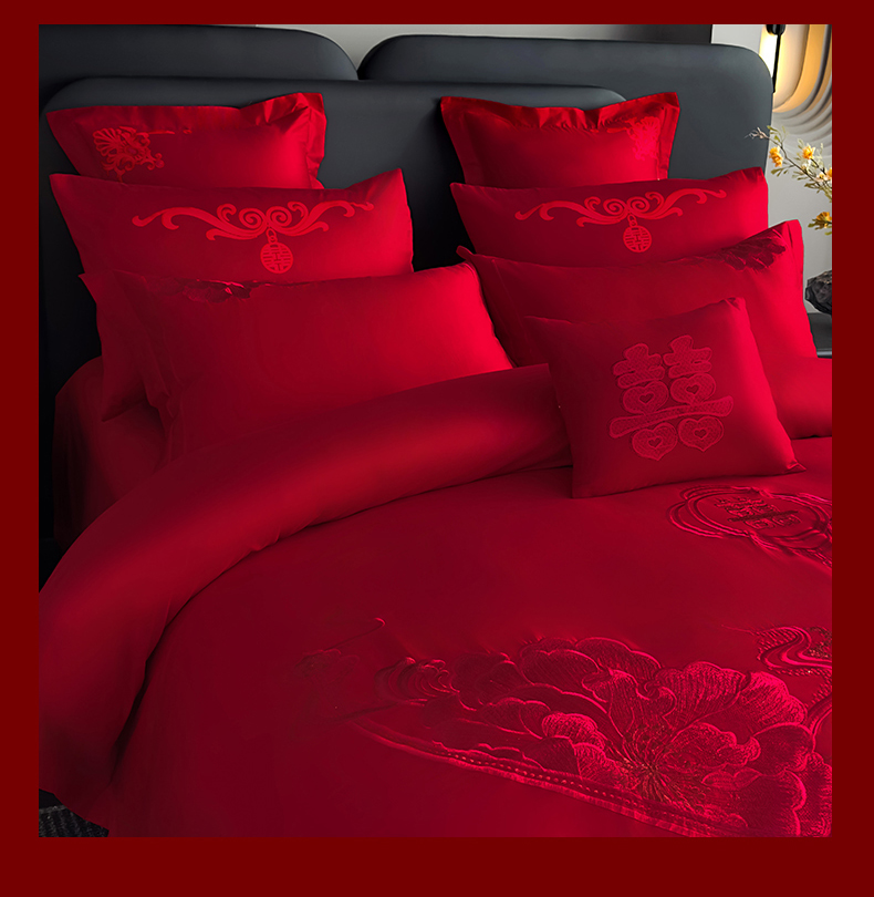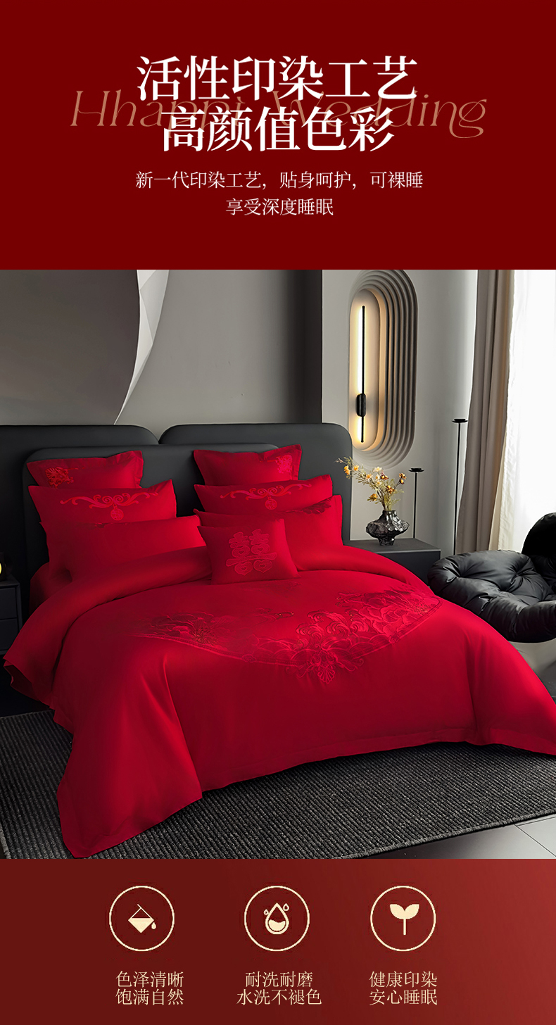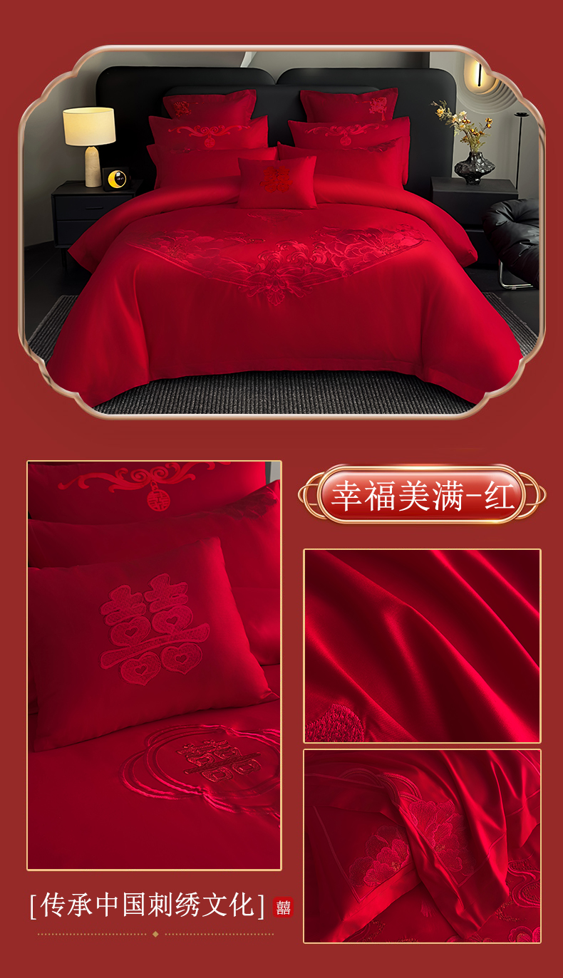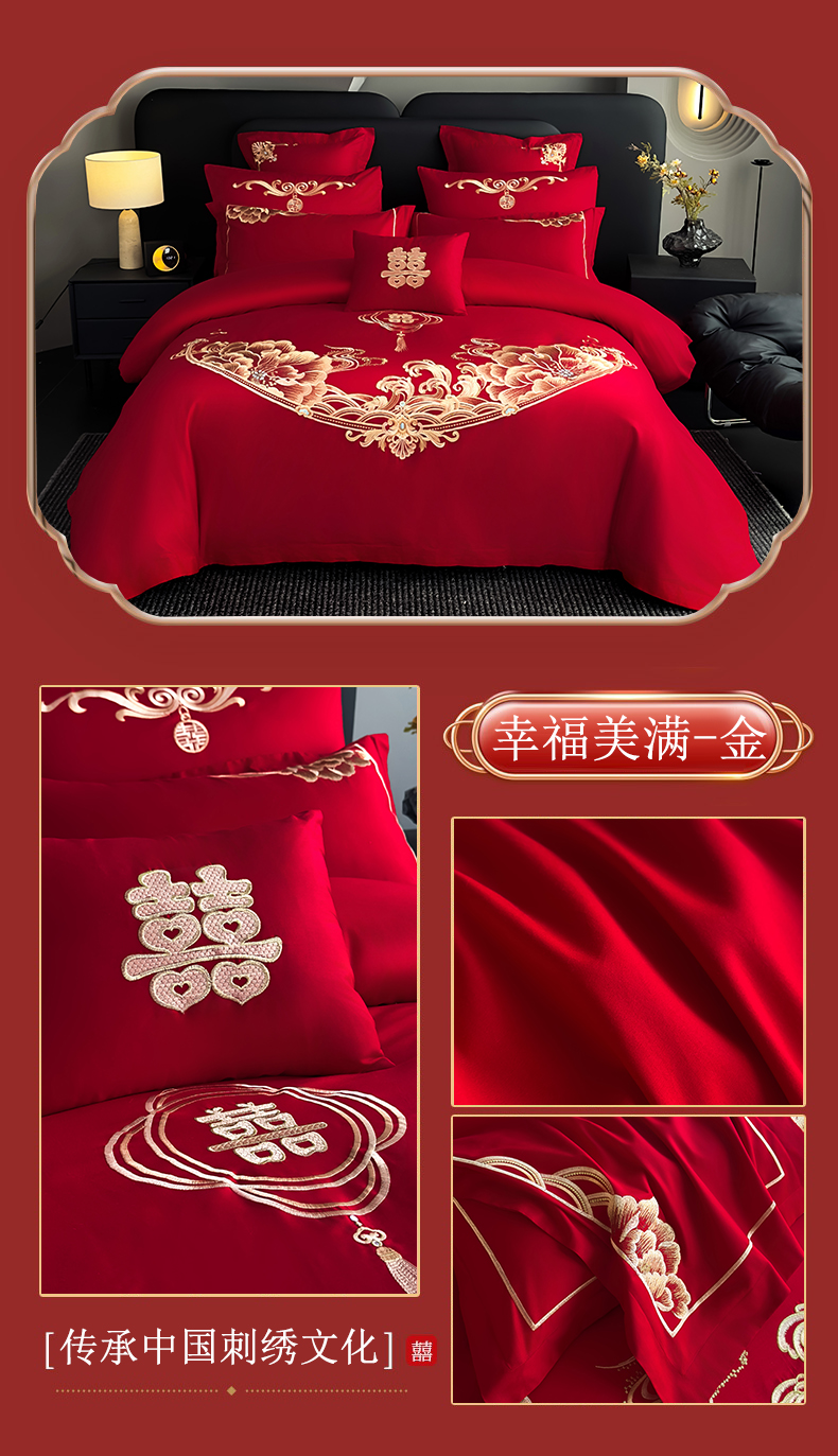 娇伊诗婚庆 2025新款刺绣工艺全棉婚庆四件套系列 幸福美满红