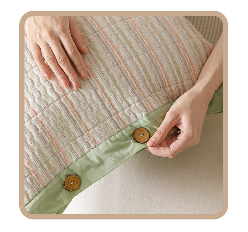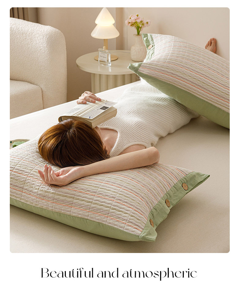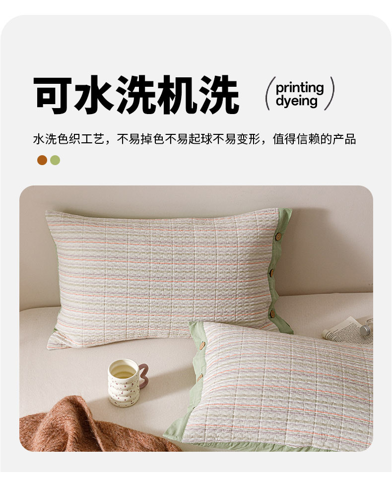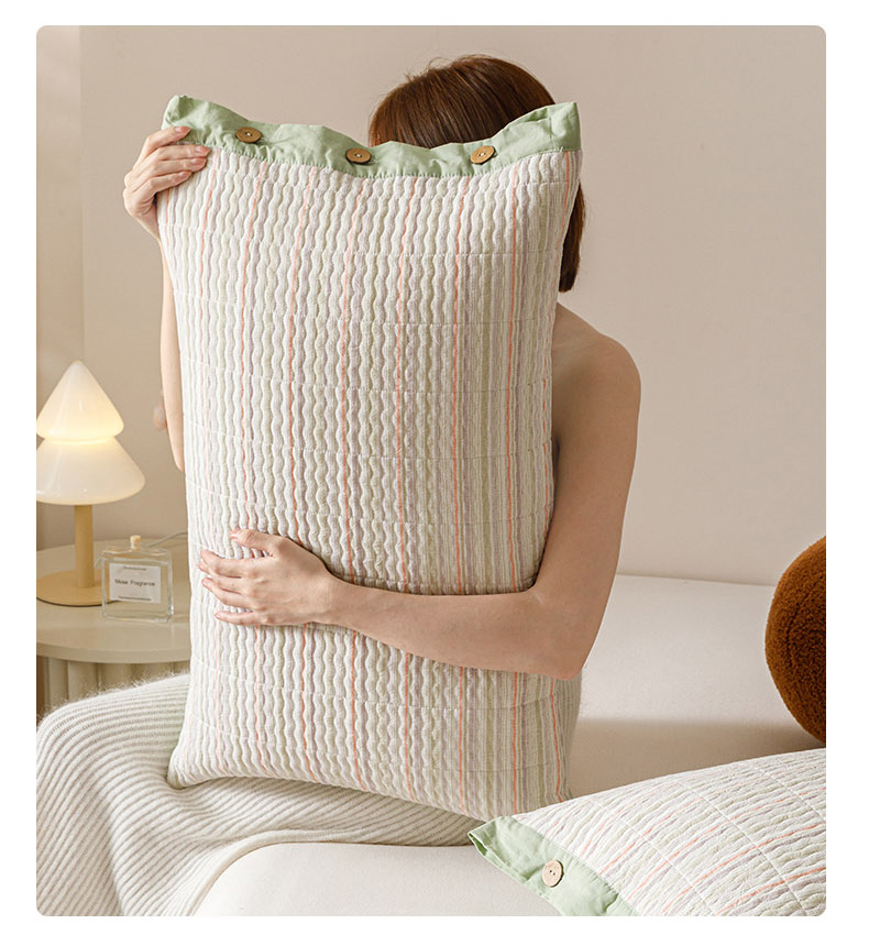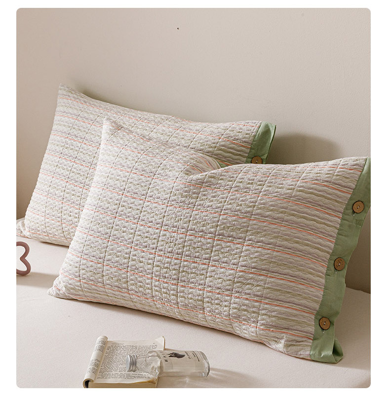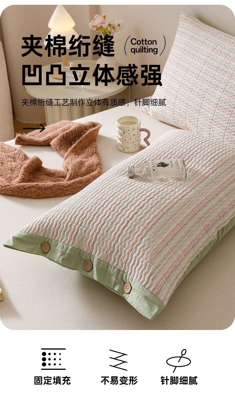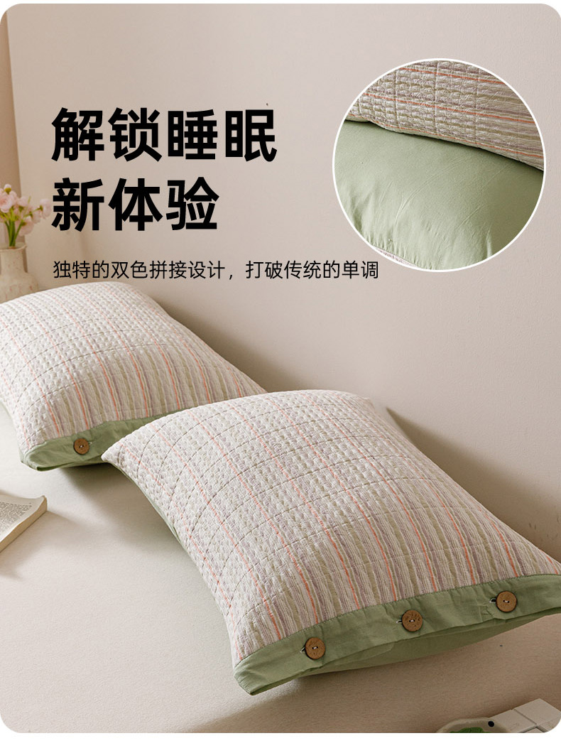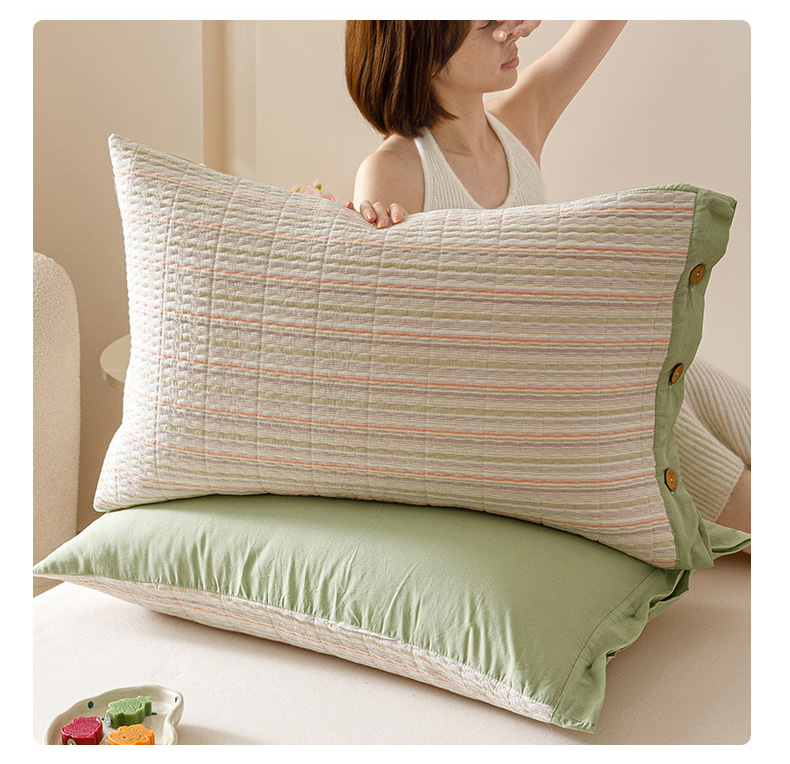 爱港家纺 2025新款全棉色织水洗加厚绗缝夹棉防头油双面枕头套单品枕套单件枕套 小时代绿