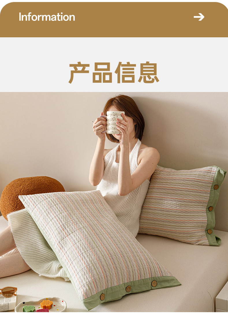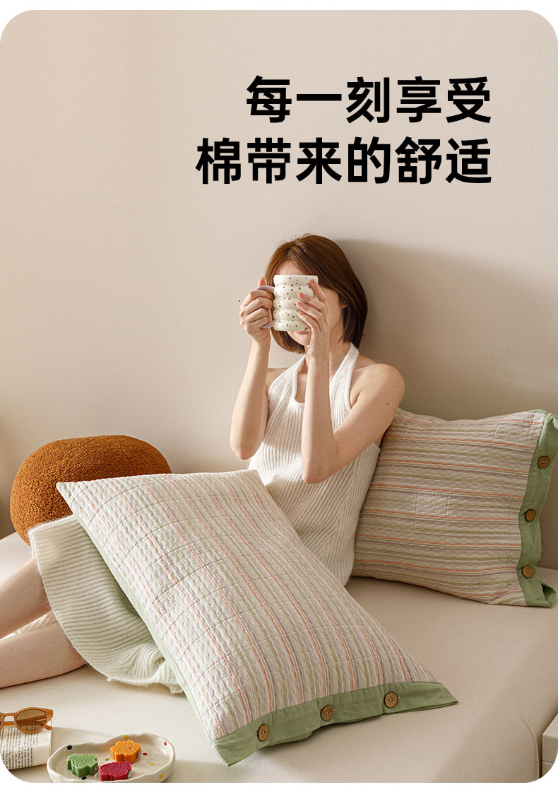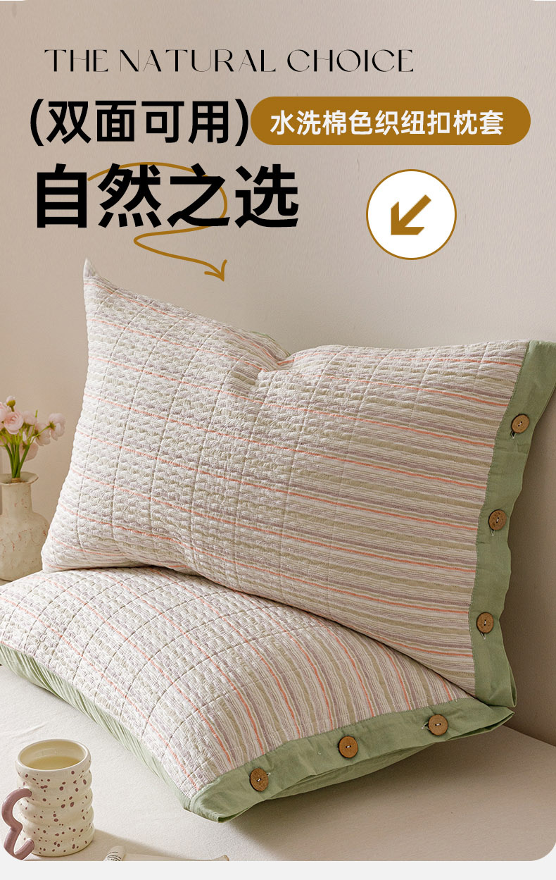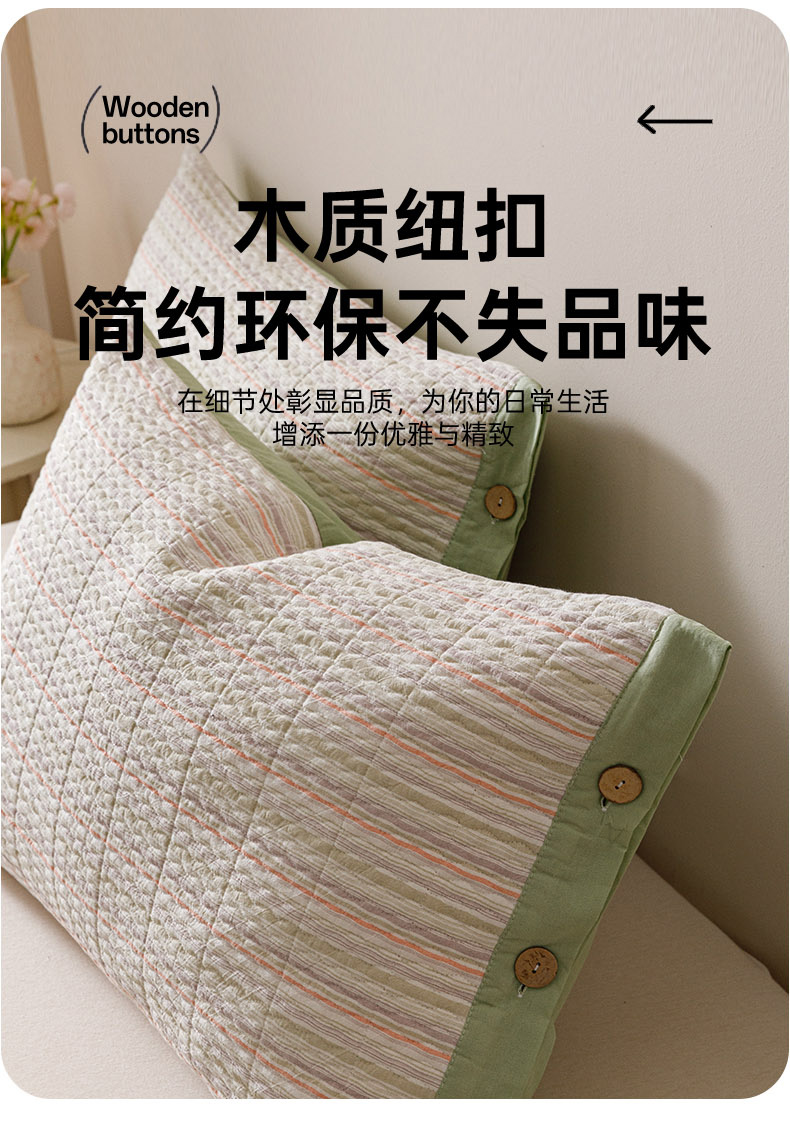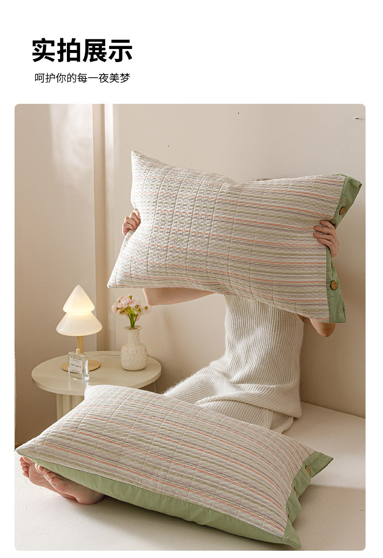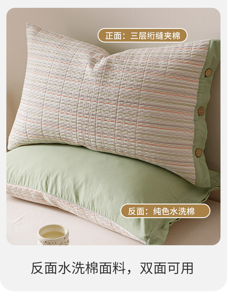 商品名称:爱港家纺 2025新款全棉色织水洗加厚绗缝夹棉防头油双面枕头套单品枕套单件枕套 小时代绿