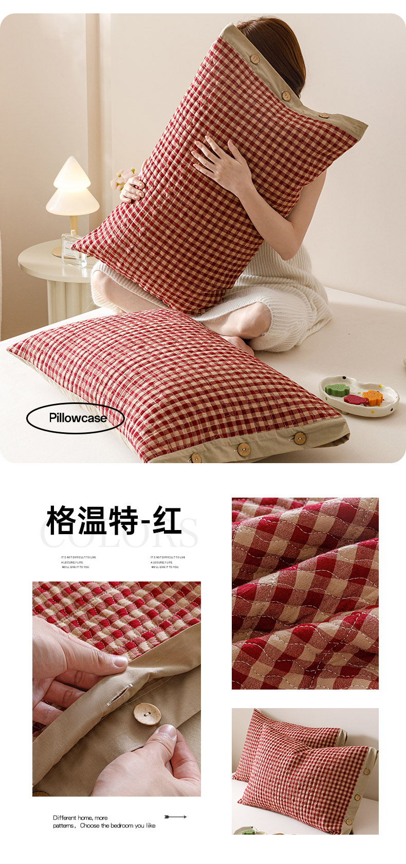 (总)爱港家纺 2025新款全棉色织水洗加厚绗缝夹棉防头油双面枕头套单品枕套单件枕套,组合图仅供参考不可下单,格温特红,格温特灰,格温特蓝,小时代咖,小时代蓝,小时代绿