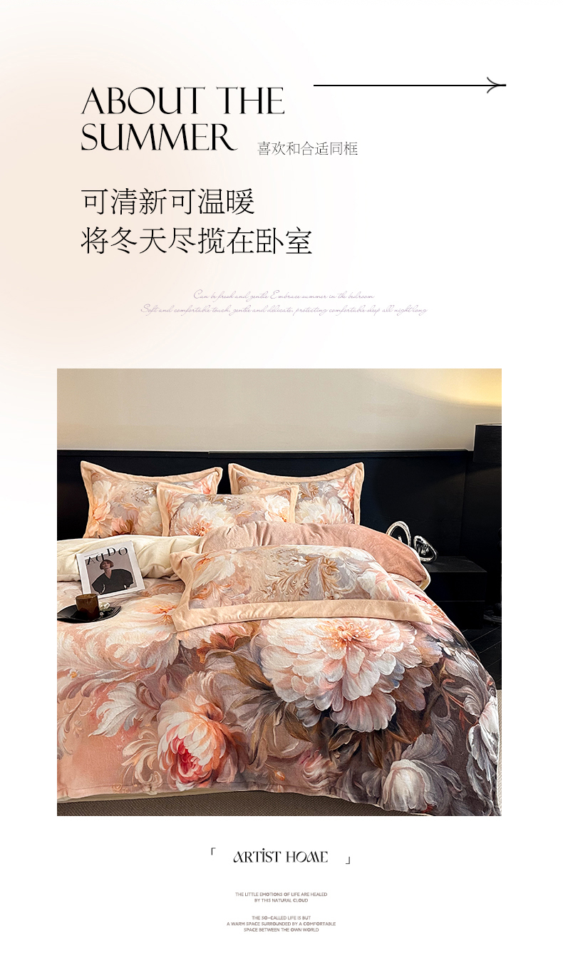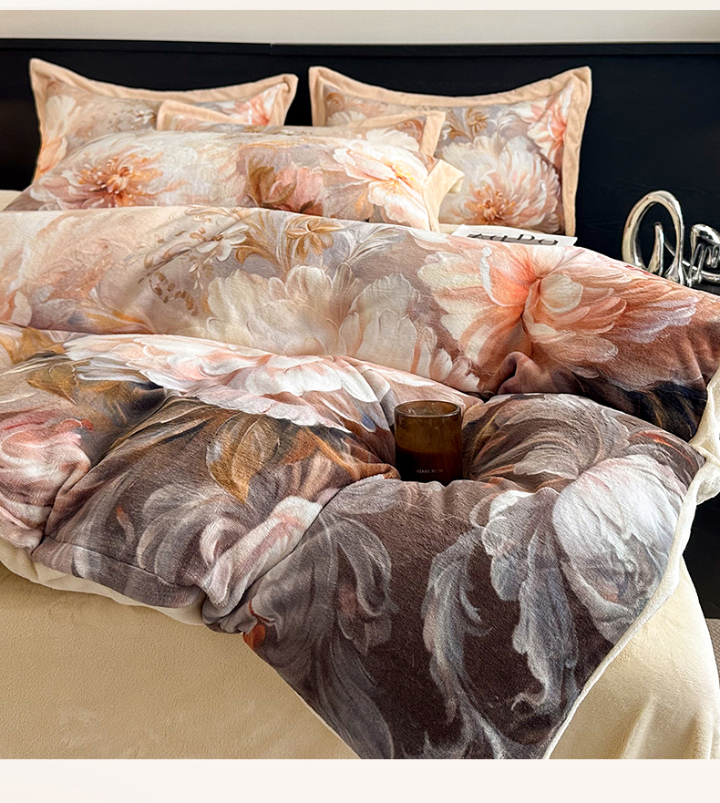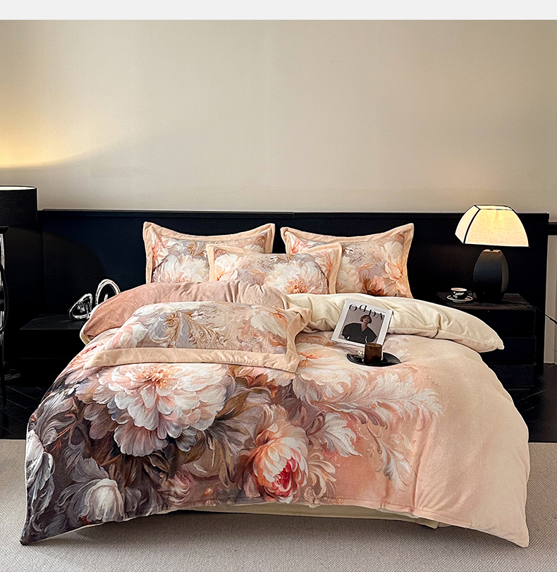 诺梵家纺 2025新款8斤加厚保暖金貂绒牛奶绒印花四件套 花枝如梦,花枝如梦