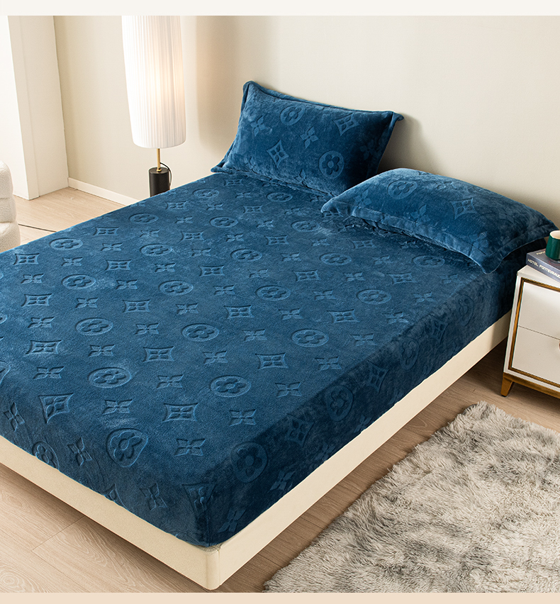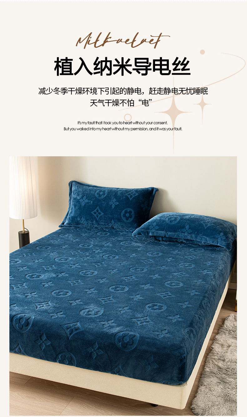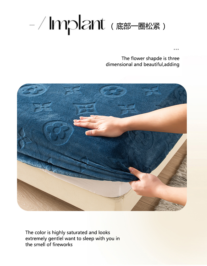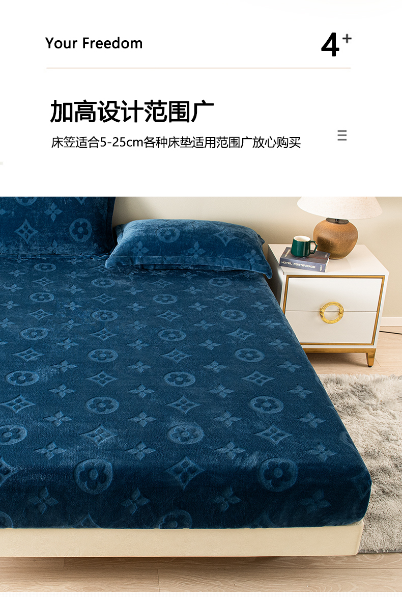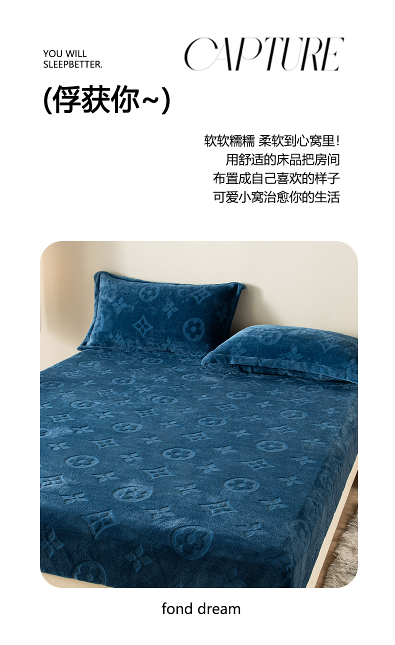 商品名称:给笠 2025新款200克剪花五叶草爱维牛奶绒床笠 宝石蓝