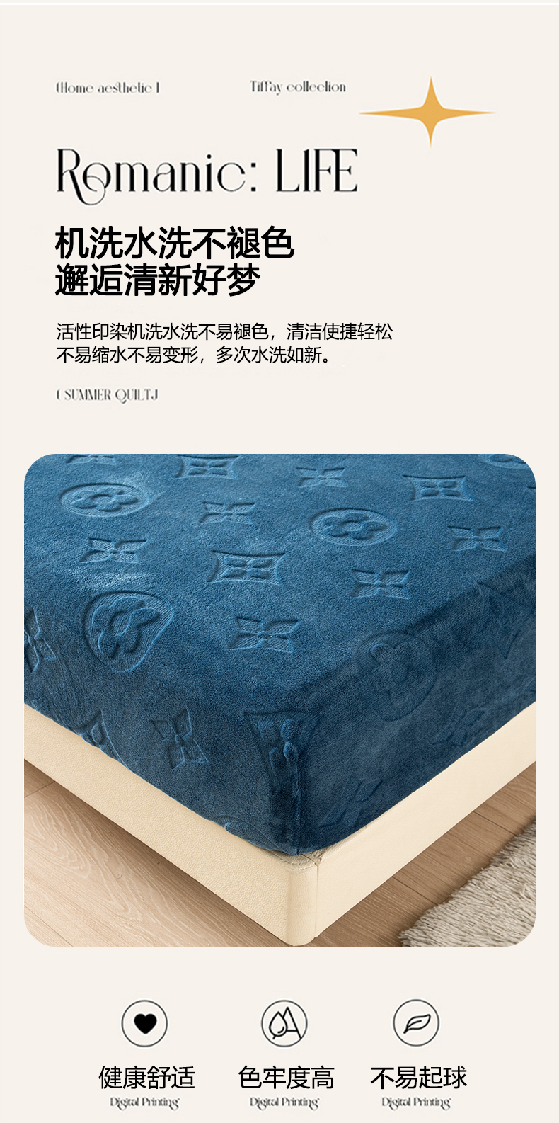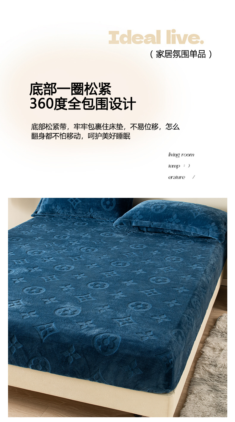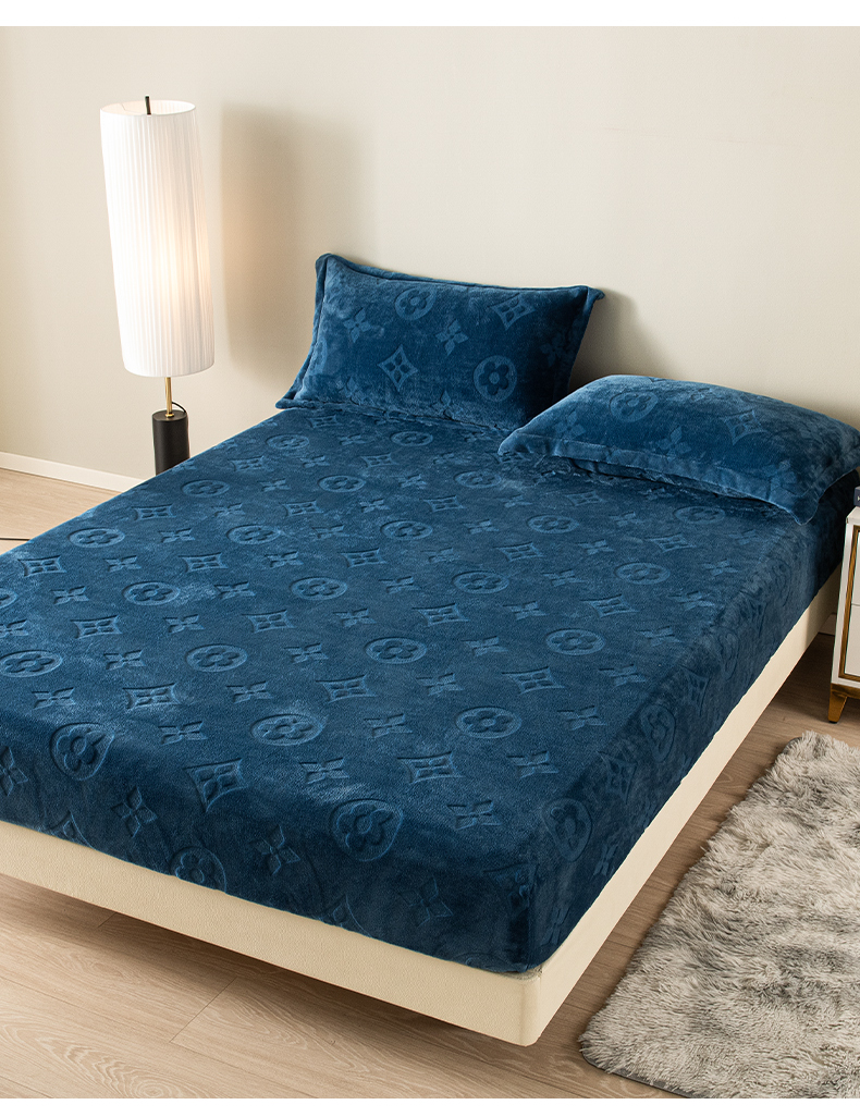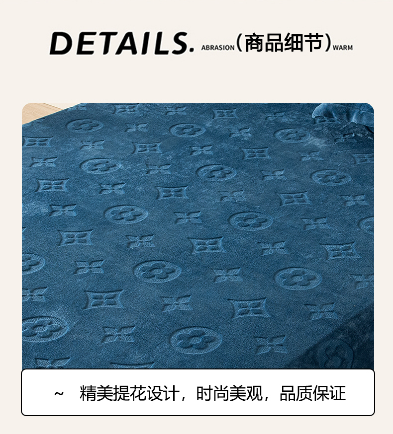 商品名称:给笠 2025新款200克剪花五叶草爱维牛奶绒床笠 宝石蓝