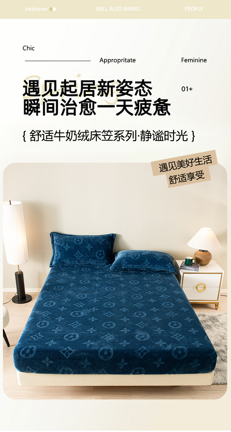 (总)给笠 2025新款200克剪花五叶草爱维牛奶绒床笠,深灰,宝石蓝,豆沙,雅士灰