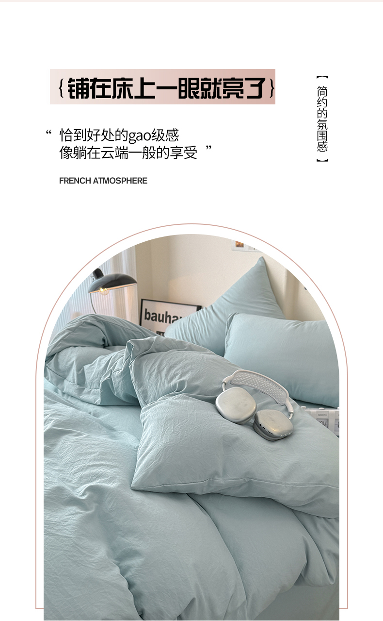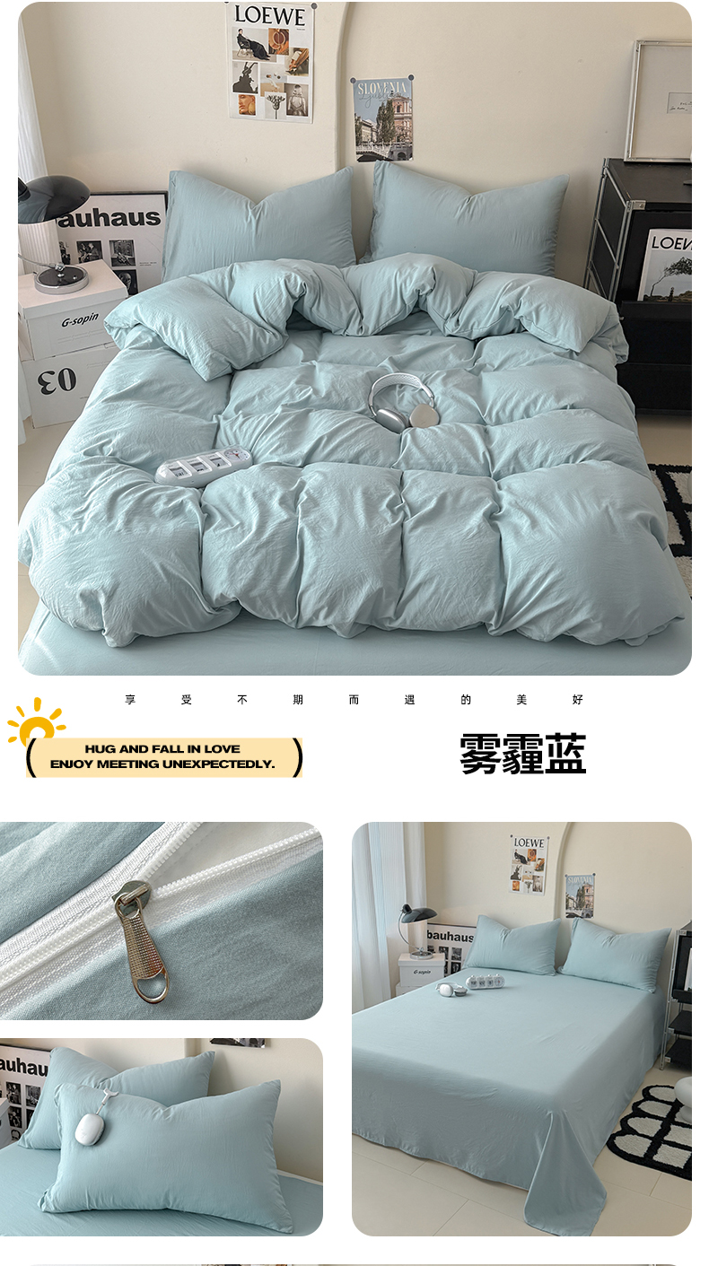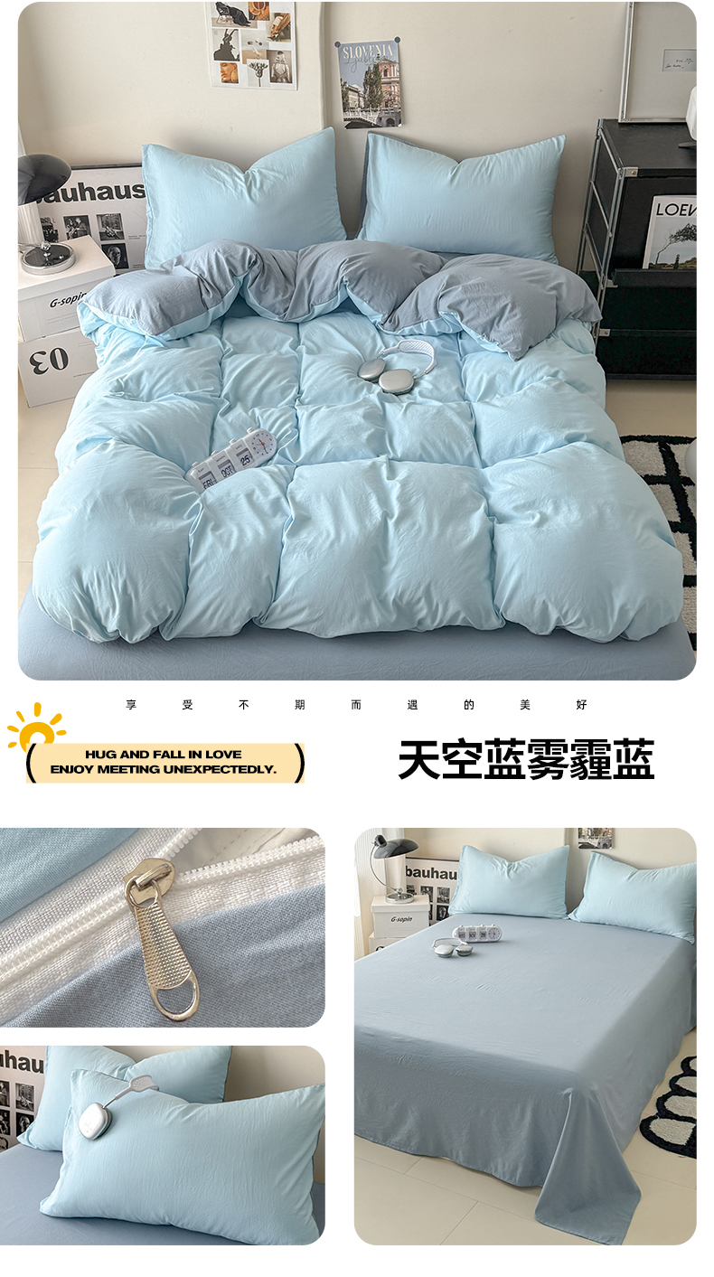 当前位置: 91家纺网 > 商品网购 > 床品套件 > 四件套 > 其它四件套 > 桔禾家纺 2025新款ins风纯色水洗棉四件套双拼水洗棉学生三件套四件套 雾霾蓝