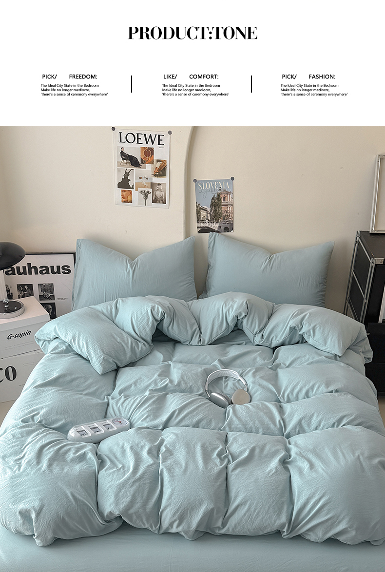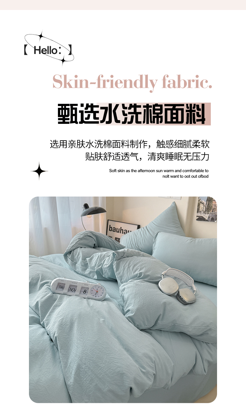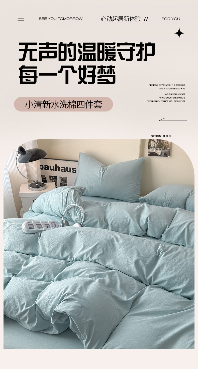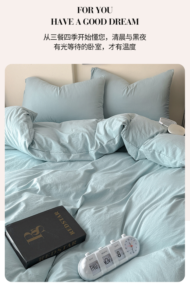 当前位置: 91家纺网 > 商品网购 > 床品套件 > 四件套 > 其它四件套 > 桔禾家纺 2025新款ins风纯色水洗棉四件套双拼水洗棉学生三件套四件套 雾霾蓝