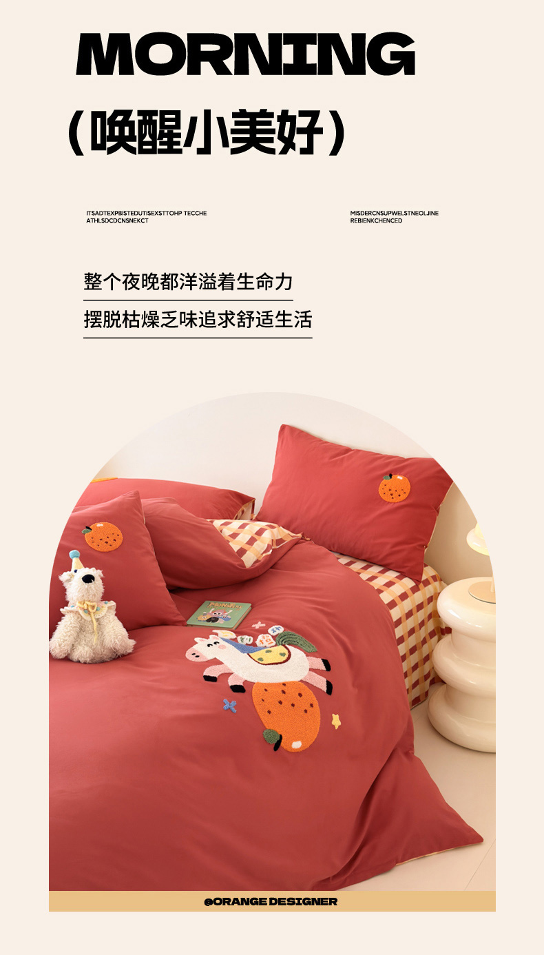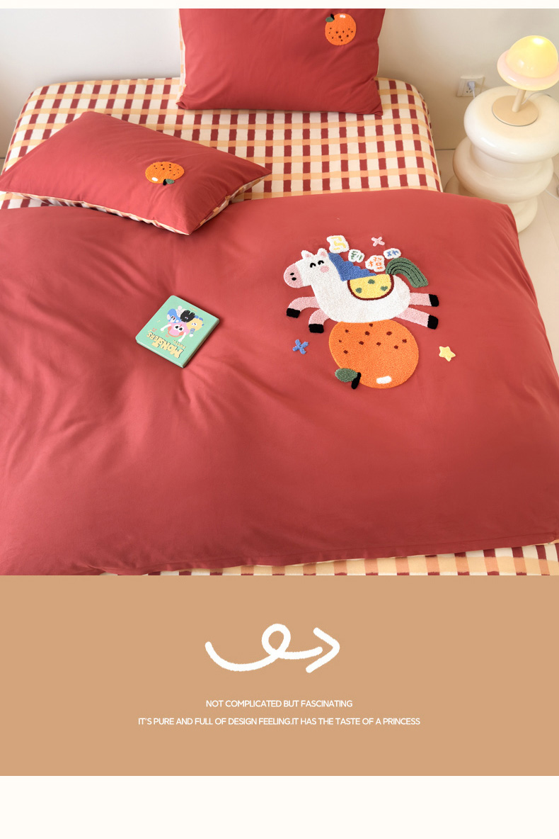 当前位置: 91家纺网 > 商品网购 > 床品套件 > 四件套 > 全棉普通四件套 > 如意朵 2025新款全棉加厚磨毛绣花四件套风格一(专版花型) 马到橙功