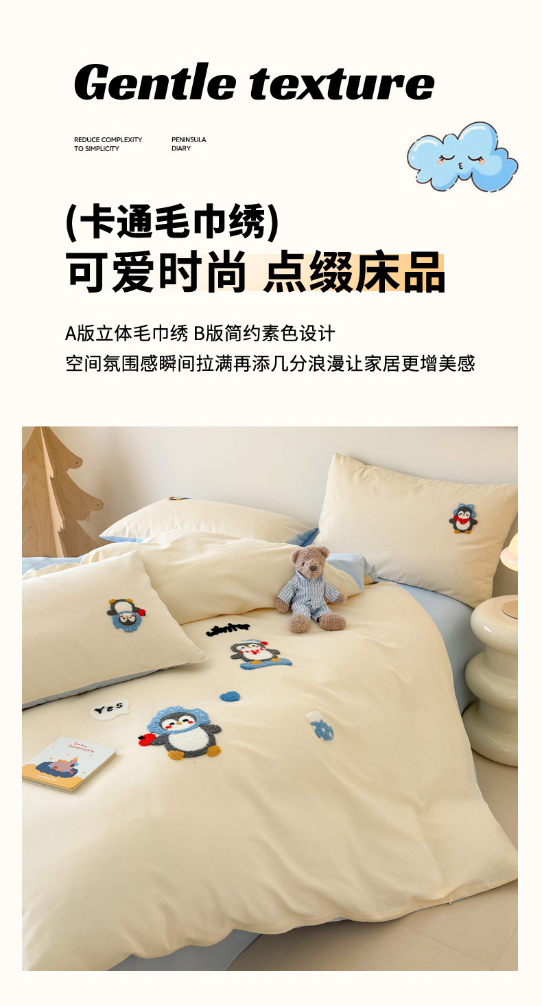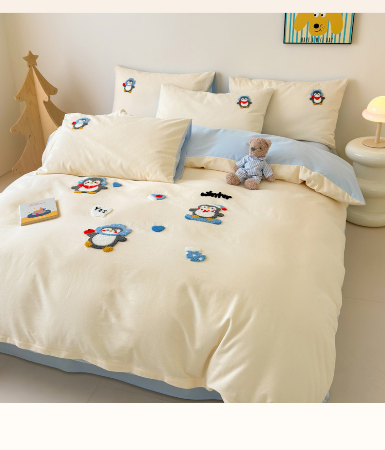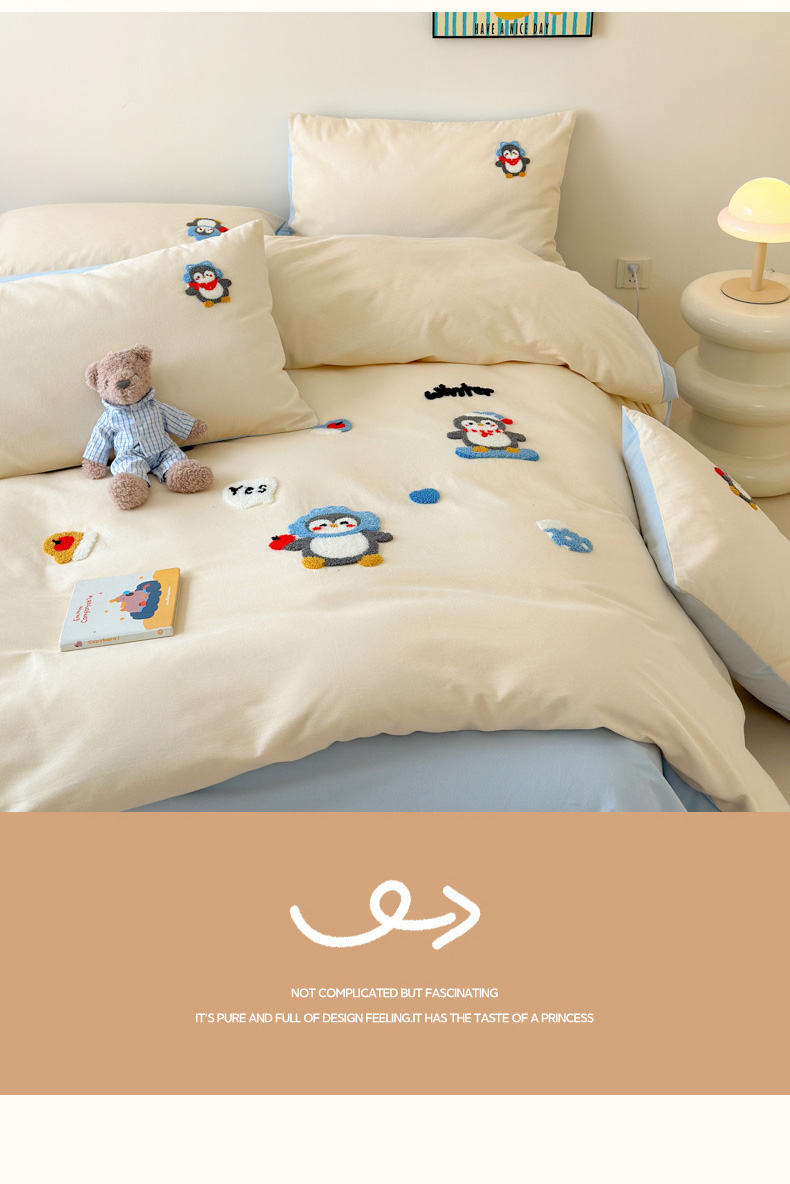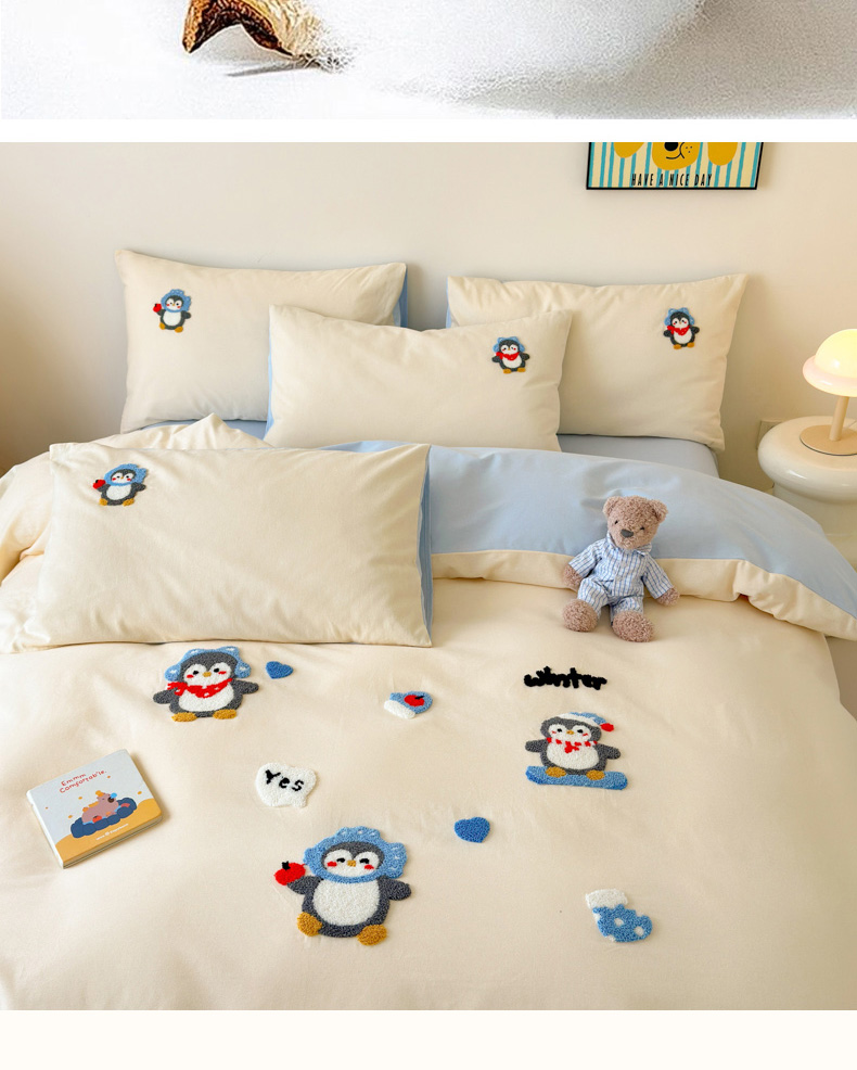 当前位置: 91家纺网 > 商品网购 > 床品套件 > 四件套 > 全棉普通四件套 > 如意朵 2025新款全棉加厚磨毛绣花四件套风格一(专版花型) 追梦企鹅米