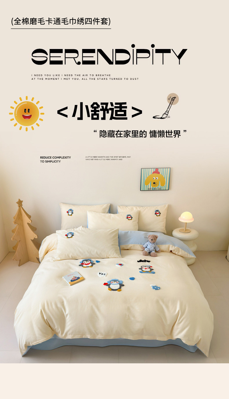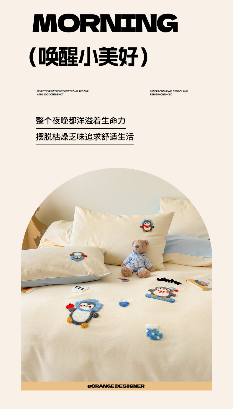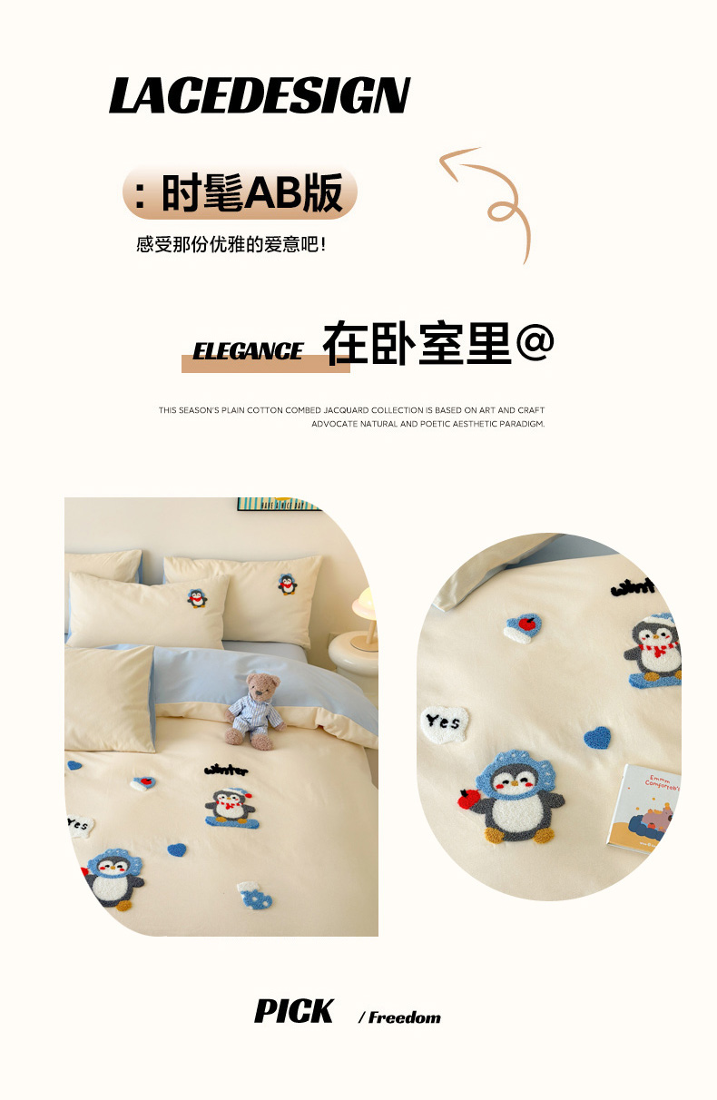 当前位置: 91家纺网 > 商品网购 > 床品套件 > 四件套 > 全棉普通四件套 > 如意朵 2025新款全棉加厚磨毛绣花四件套风格一(专版花型) 追梦企鹅米