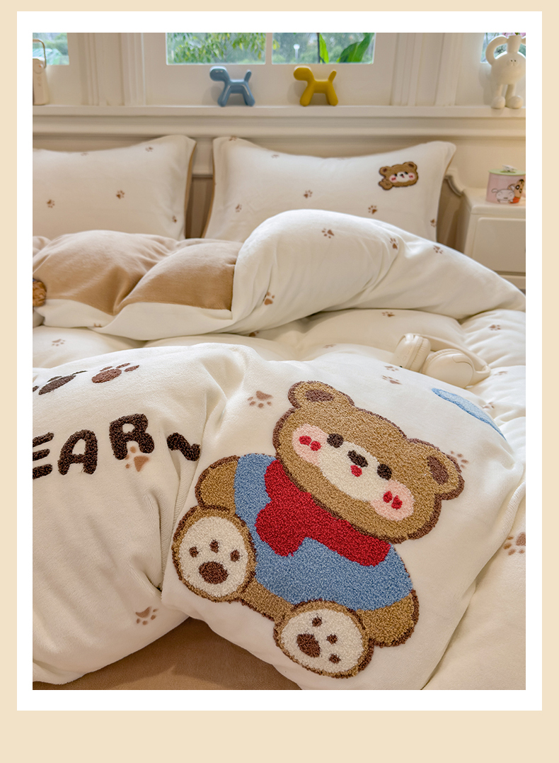 (总)兄弟坊 2025新款卡通消光牛奶绒贴布绣四件套,小狗梦乡,有趣动物园,猫咪乐园,熊熊乐园,萌犬乐园,宠物旅行,甜点旅行