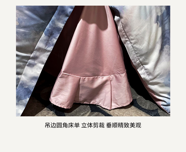 商品名称:大渔生活 2025新款贡缎长绒棉高品数码印花四件套 云花漾蓝