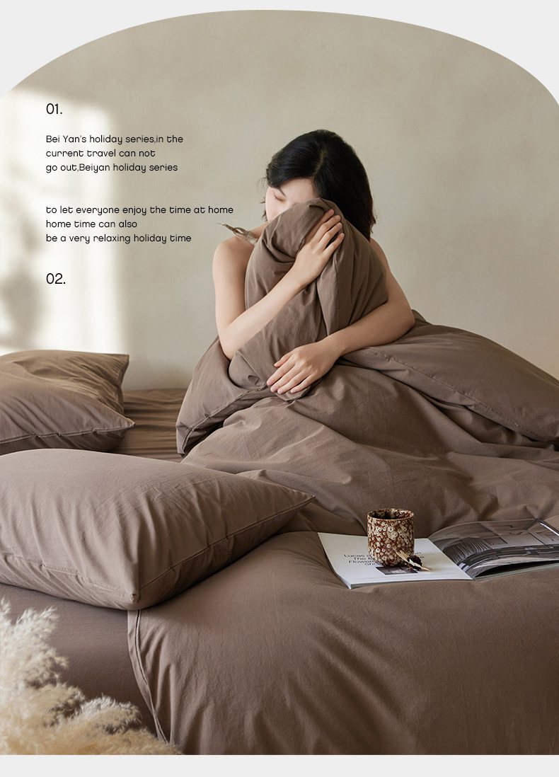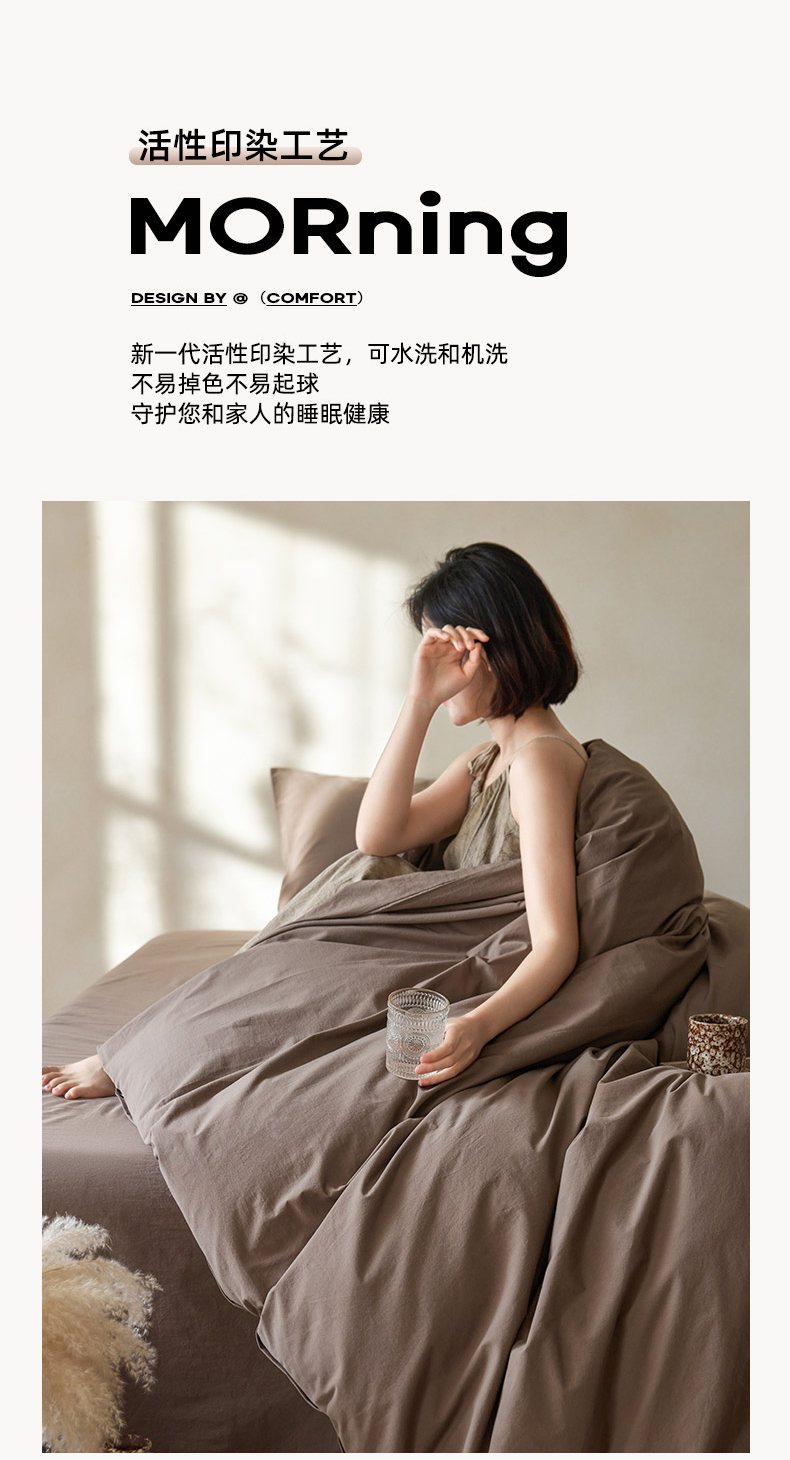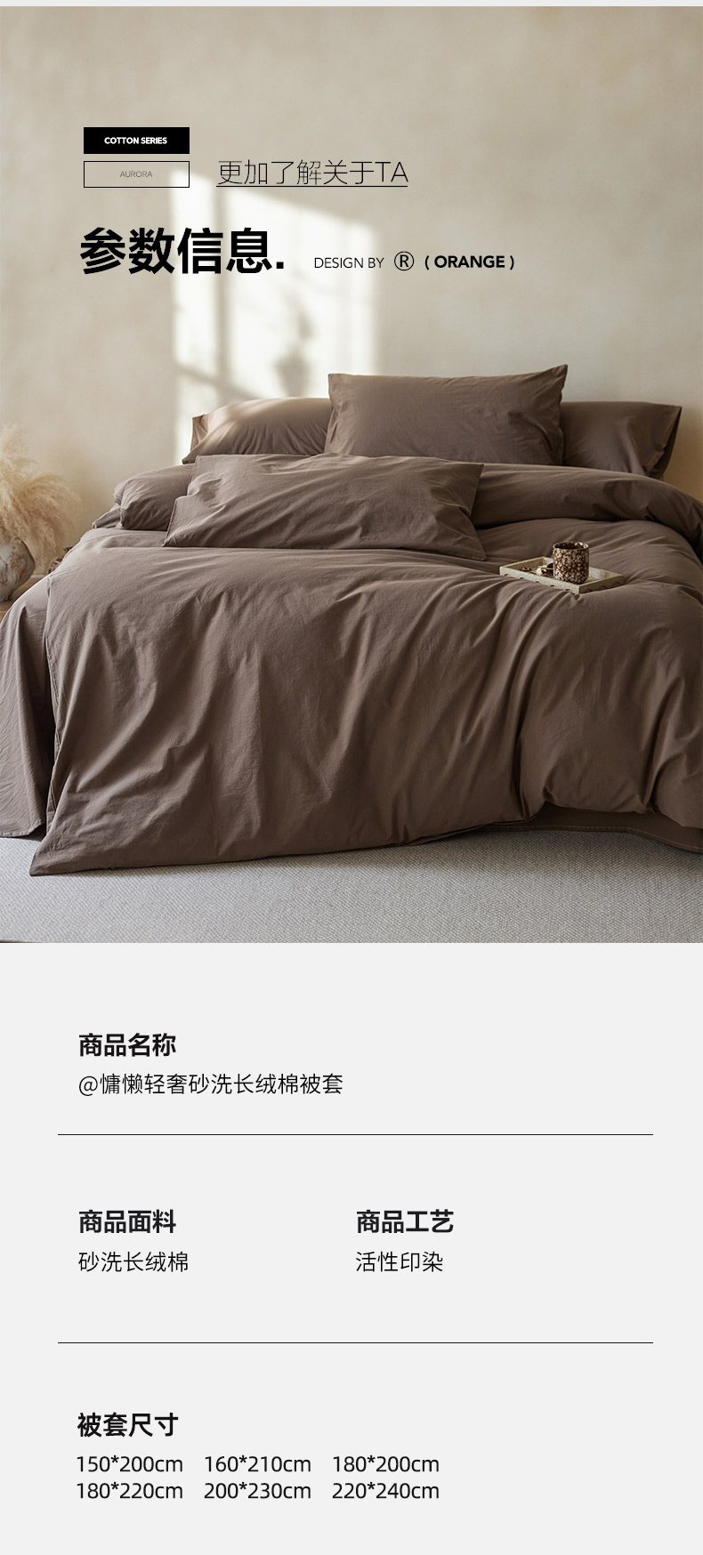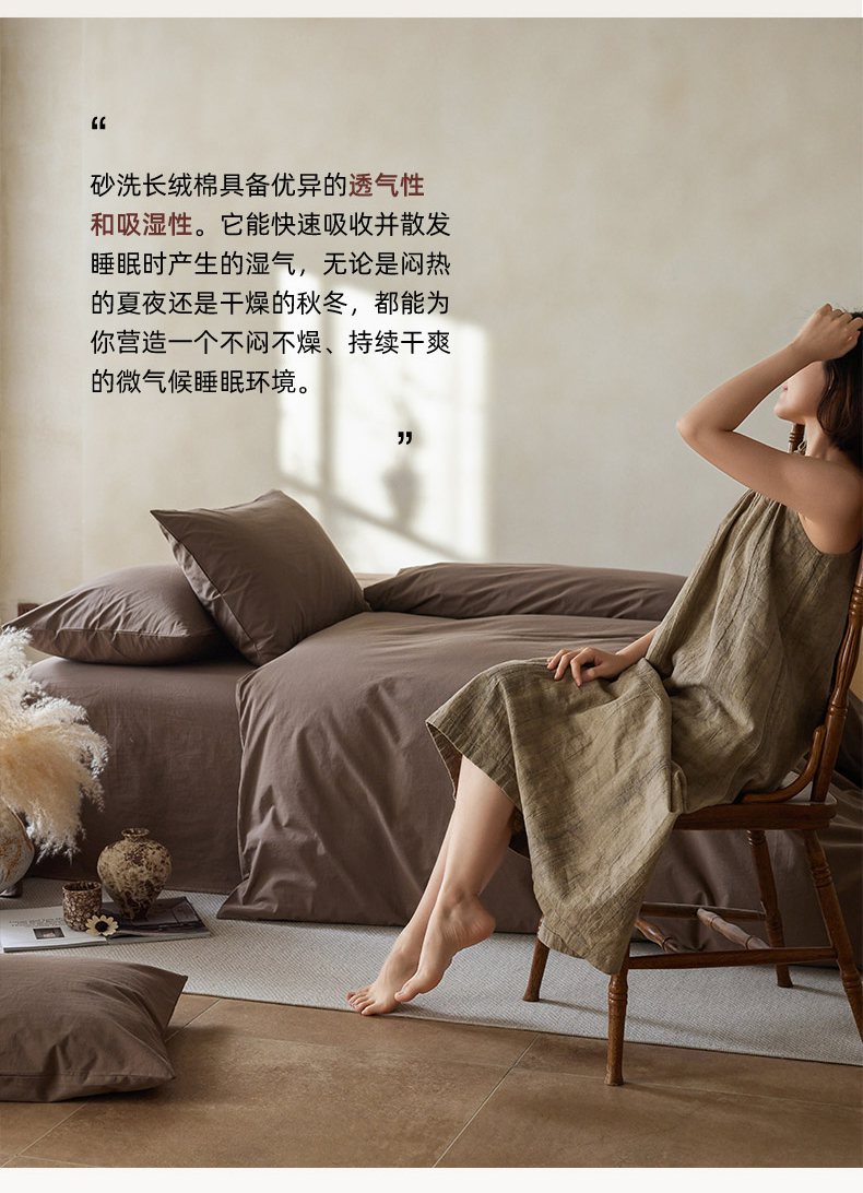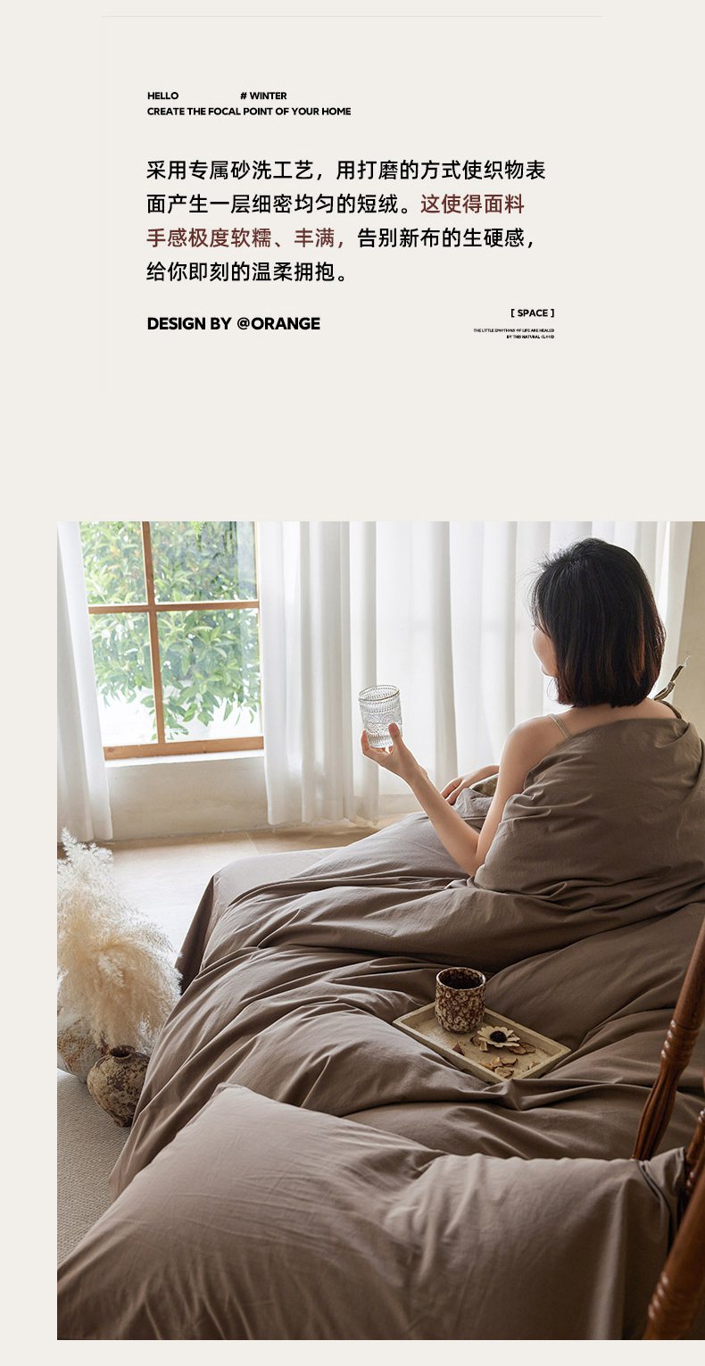商品名称:轩和家居 2025新款全棉高支旧感砂洗长绒棉单被套 落栗棕