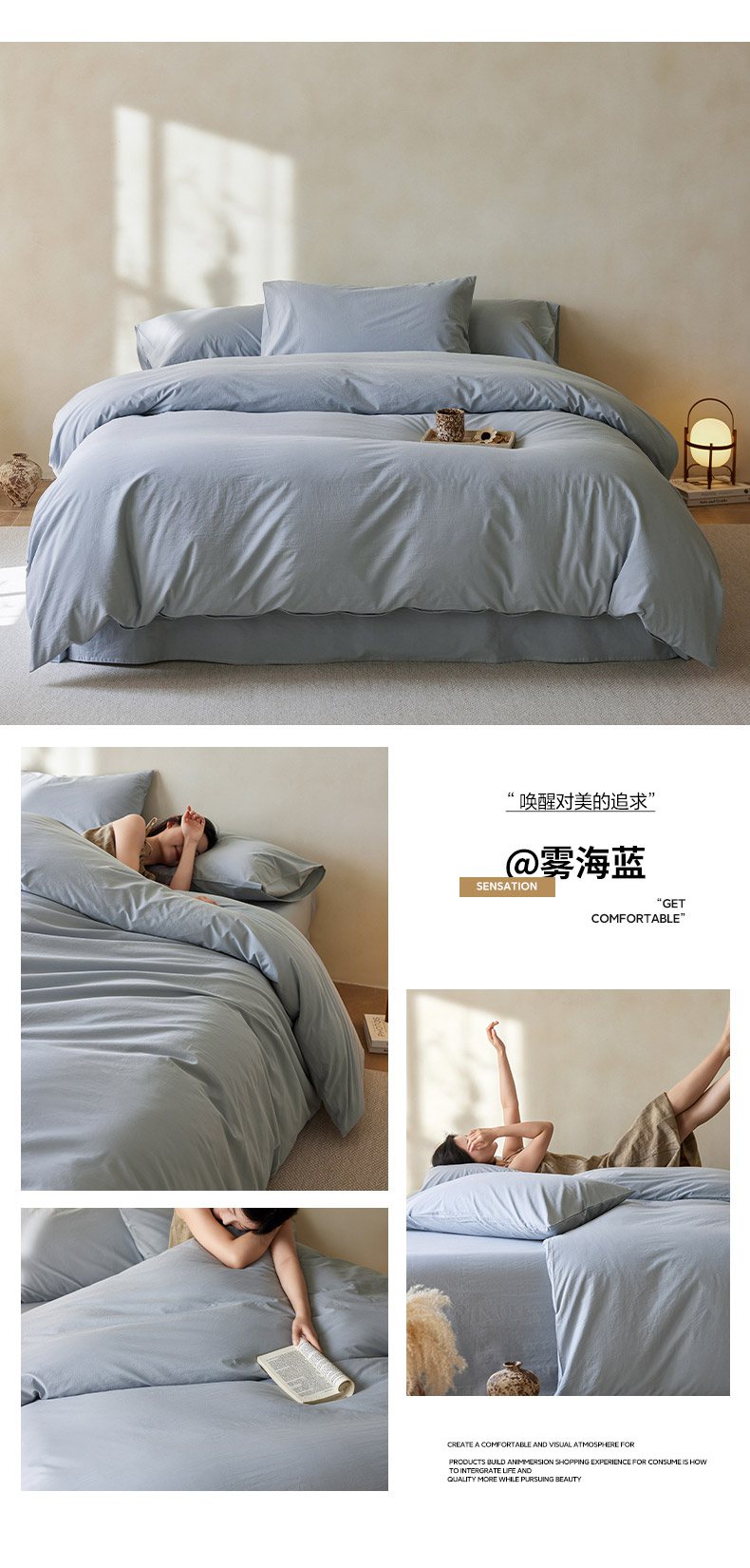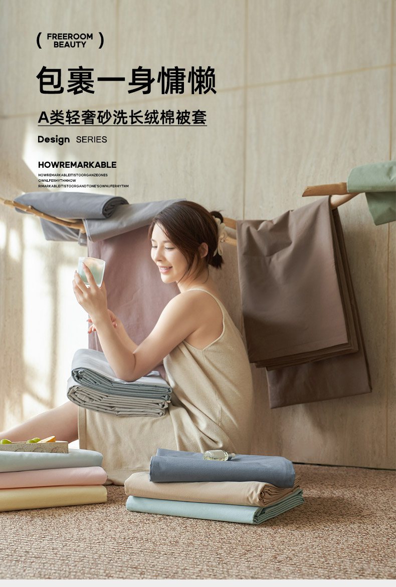 (总)轩和家居 2025新款全棉高支旧感砂洗长绒棉单被套,组合,薄樱粉,淡黄色,豆沙色,霁兰色,落栗棕,墨染灰,暮烟灰,浅云白,青绿色,秋麦色,松石绿,天空蓝,雾海蓝,细雨灰