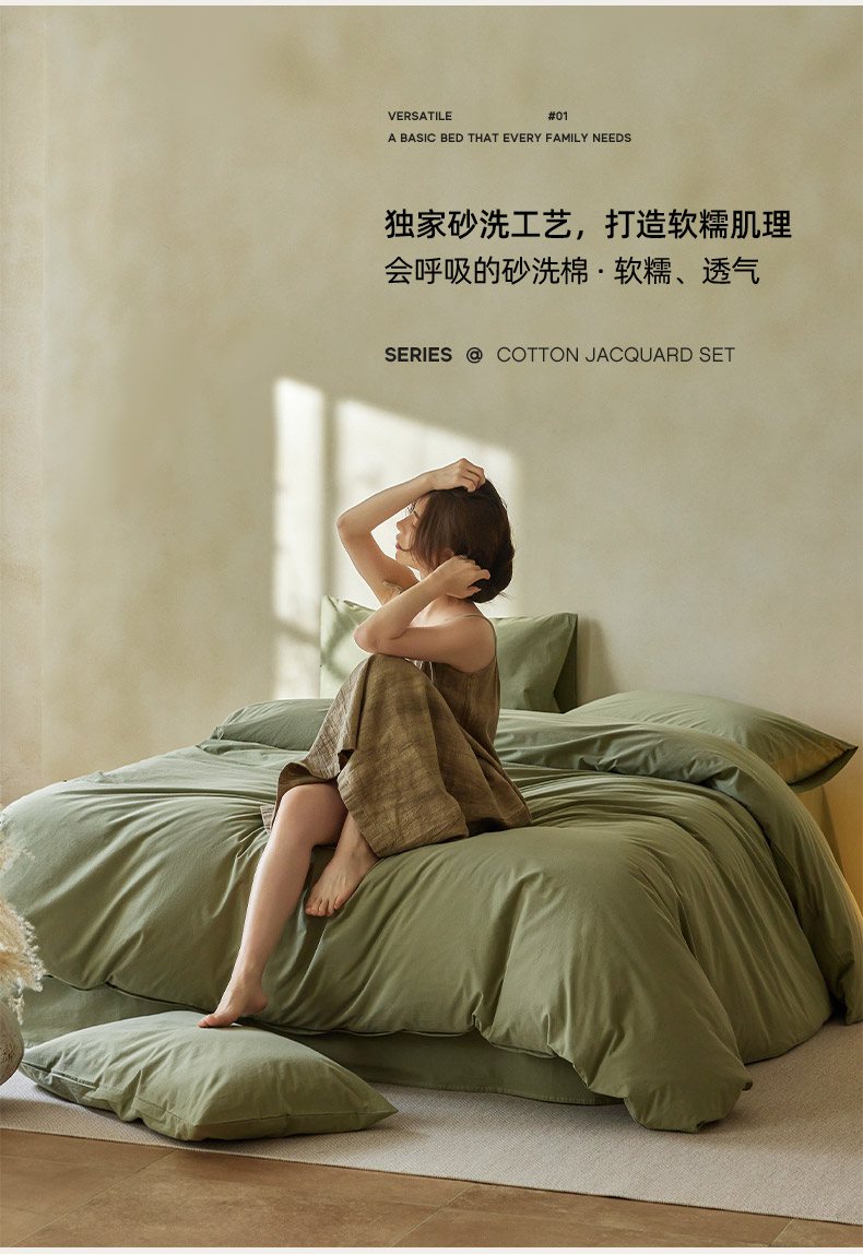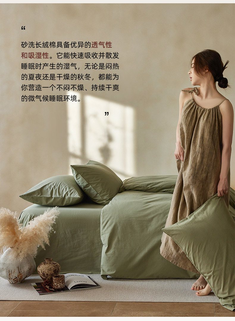 当前位置: 91家纺网 > 商品网购 > 床品套件 > 四件套 > 全棉普通四件套 > 轩和家居 2025新款全棉高支旧感砂洗长绒棉四件套 松石绿