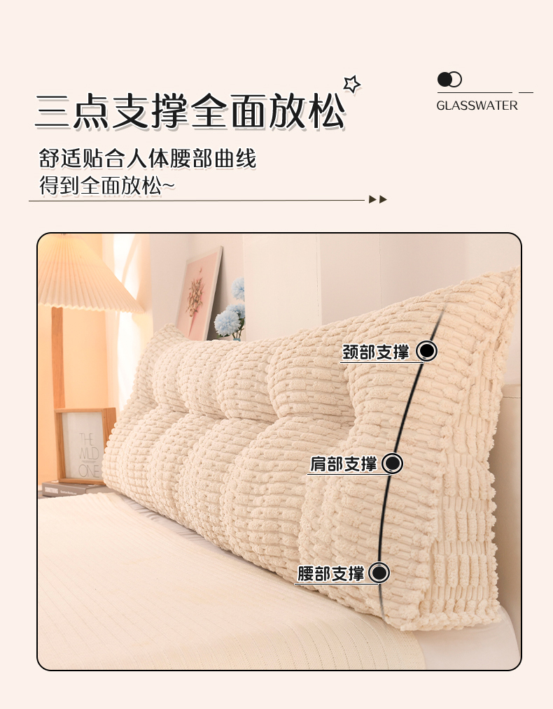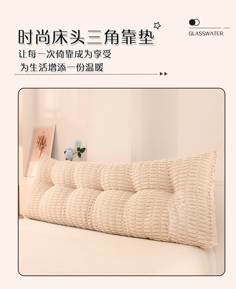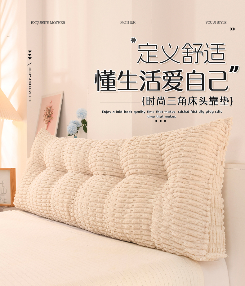 (总)碧尔家居 2025新款榻榻米床头靠枕大靠背卧室护腰靠垫可拆洗沙发双人软包三角玉米绒带头枕,米白,牛仔蓝,银灰