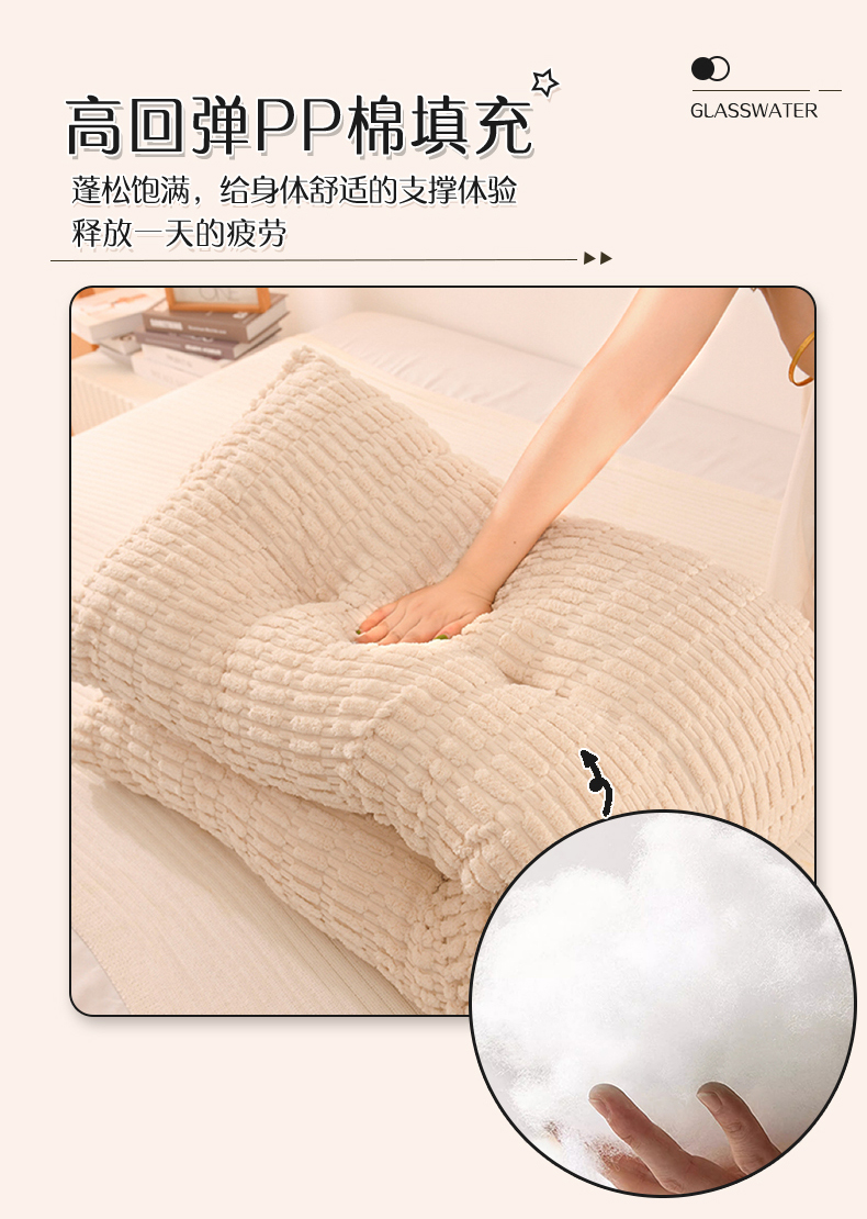 (总)碧尔家居 2025新款荷兰绒弯型三角+头枕床头靠背,奶咖,天蓝,香槟,樱花粉