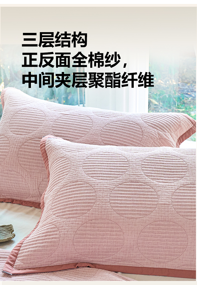 棠薇家纺 2025新款提花绑带款枕巾棉纱布枕巾夹棉枕头巾 纯色圆圈粉