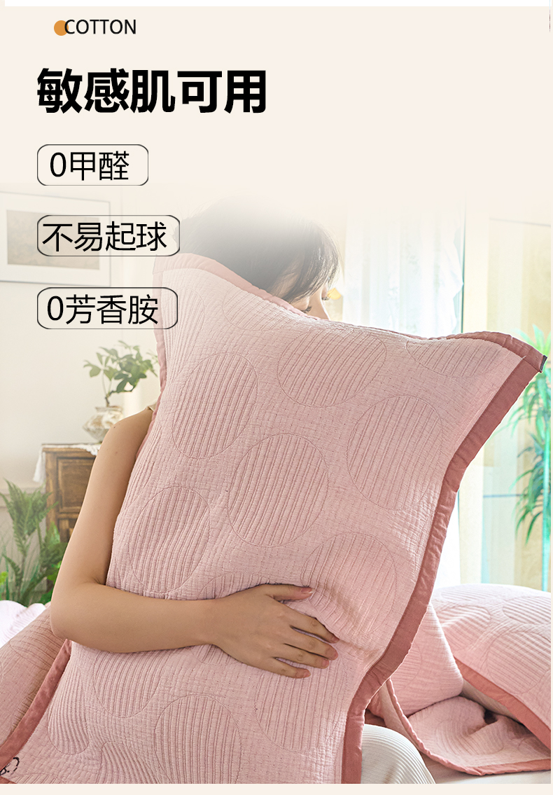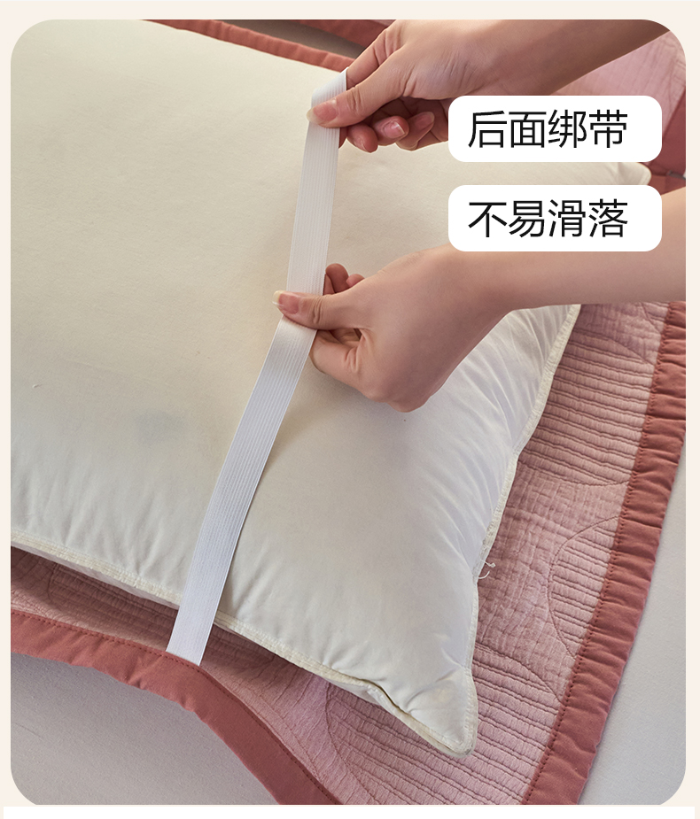 商品名称:棠薇家纺 2025新款提花绑带款枕巾棉纱布枕巾夹棉枕头巾 纯色圆圈粉