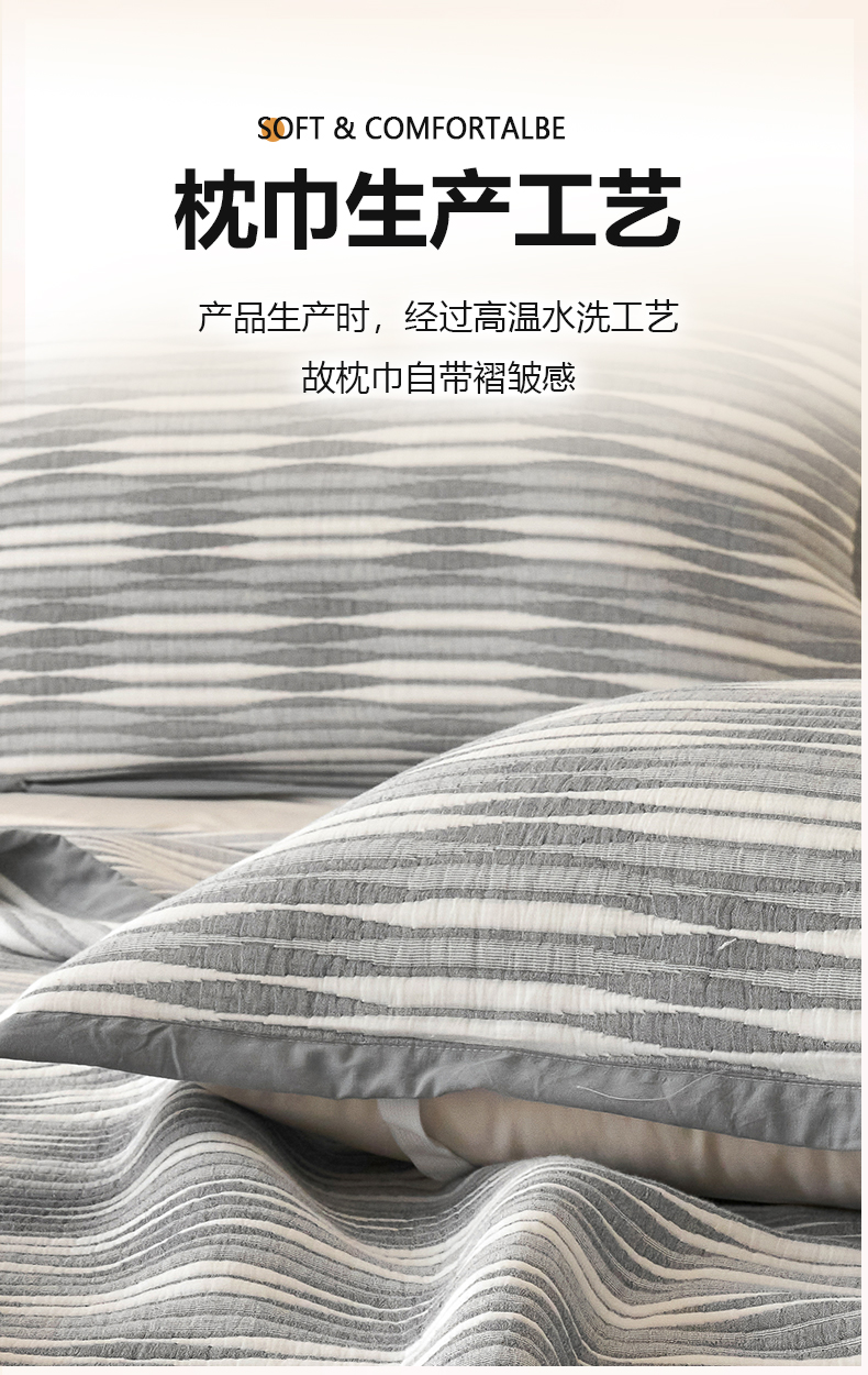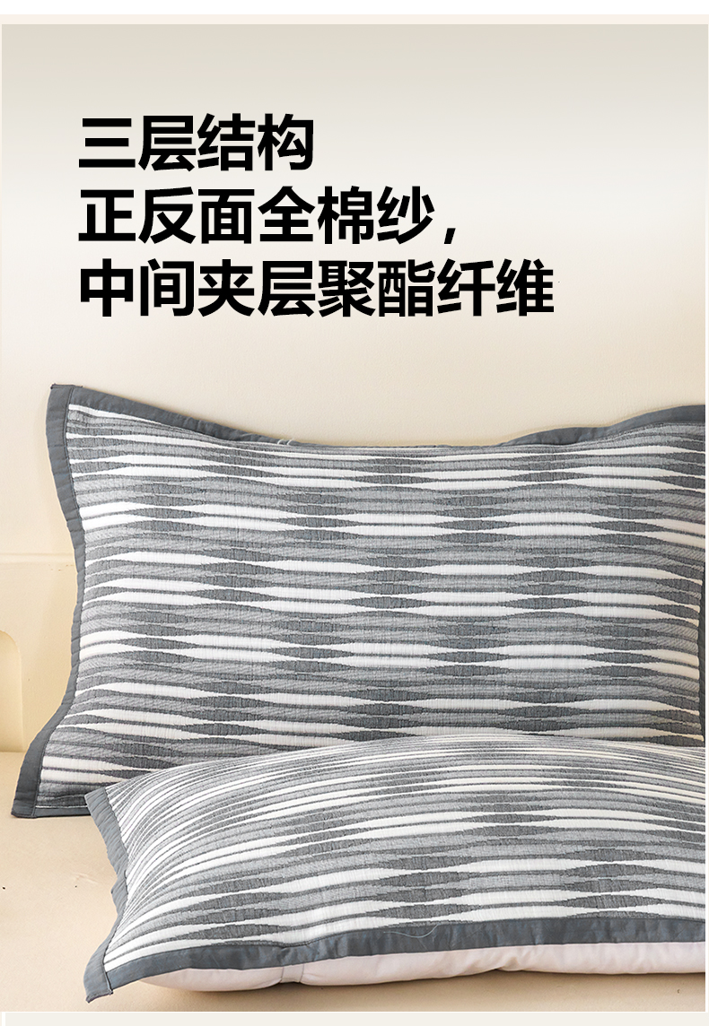 商品名称:棠薇家纺 2025新款提花绑带款枕巾棉纱布枕巾夹棉枕头巾 素练浮光灰