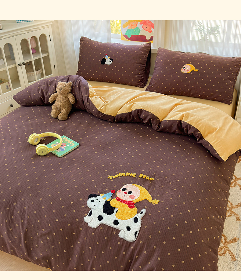 (总)奈颜 2026新款超柔水洗皱皱棉毛巾绣四件套