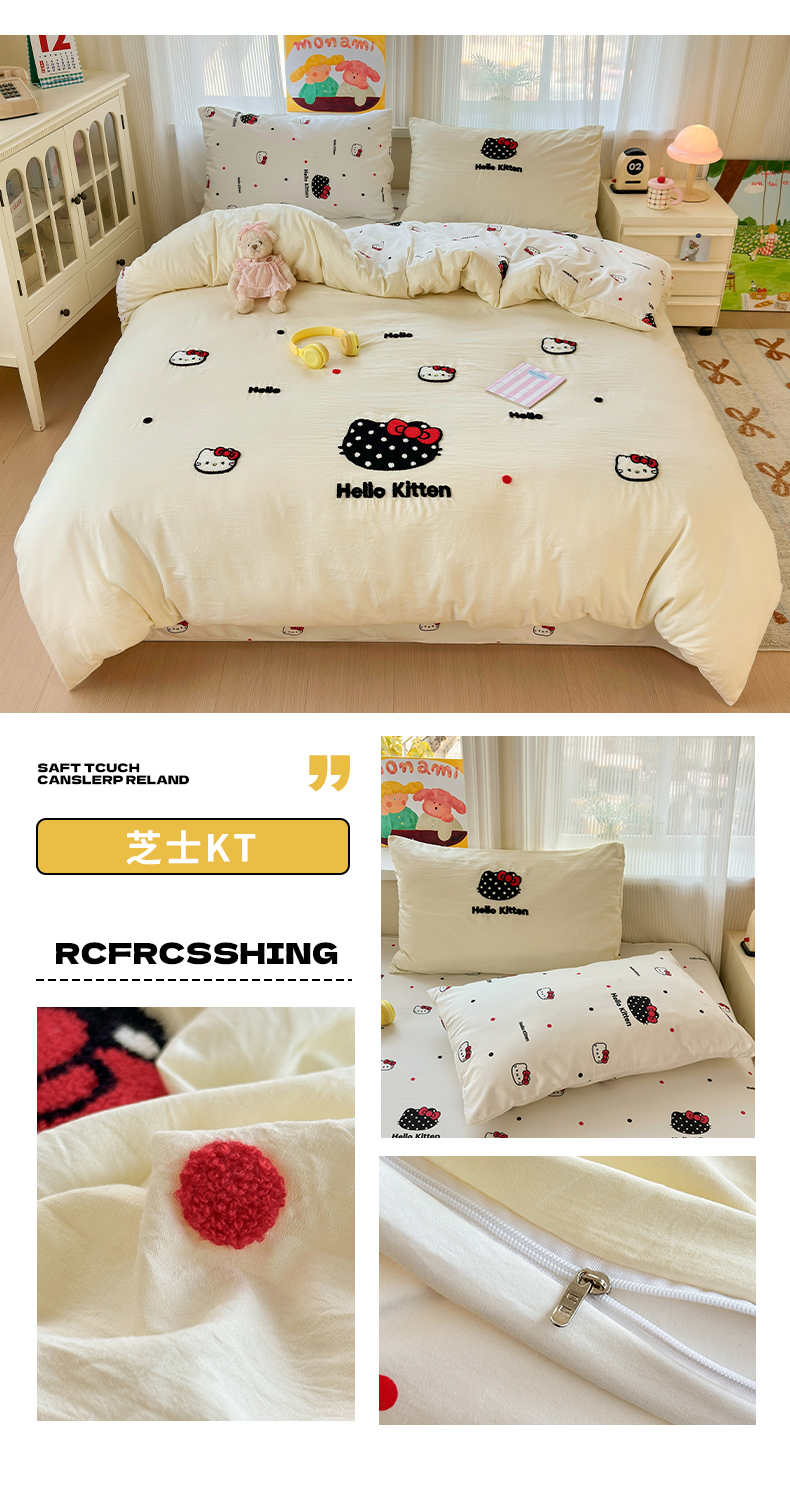 (总)奈颜 2025新款三丽鸥爆款云感双层纱印花四件套学生宿舍三件套-含防伪吊牌-叠拍图,组合图仅供展示不可下单,KT派对,蛋糕KT猫-浅粉,蛋糕KT猫-乳白,格子KT-浅蓝,嗨皮KT,库洛米-浅紫,梦幻KT,条纹KT-浅粉