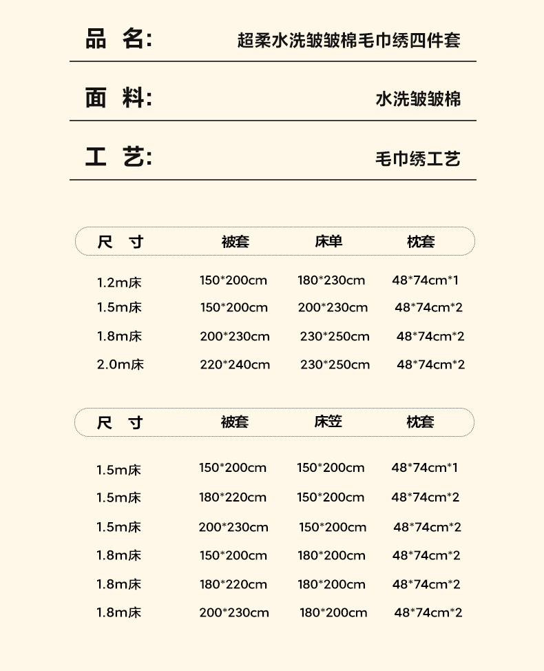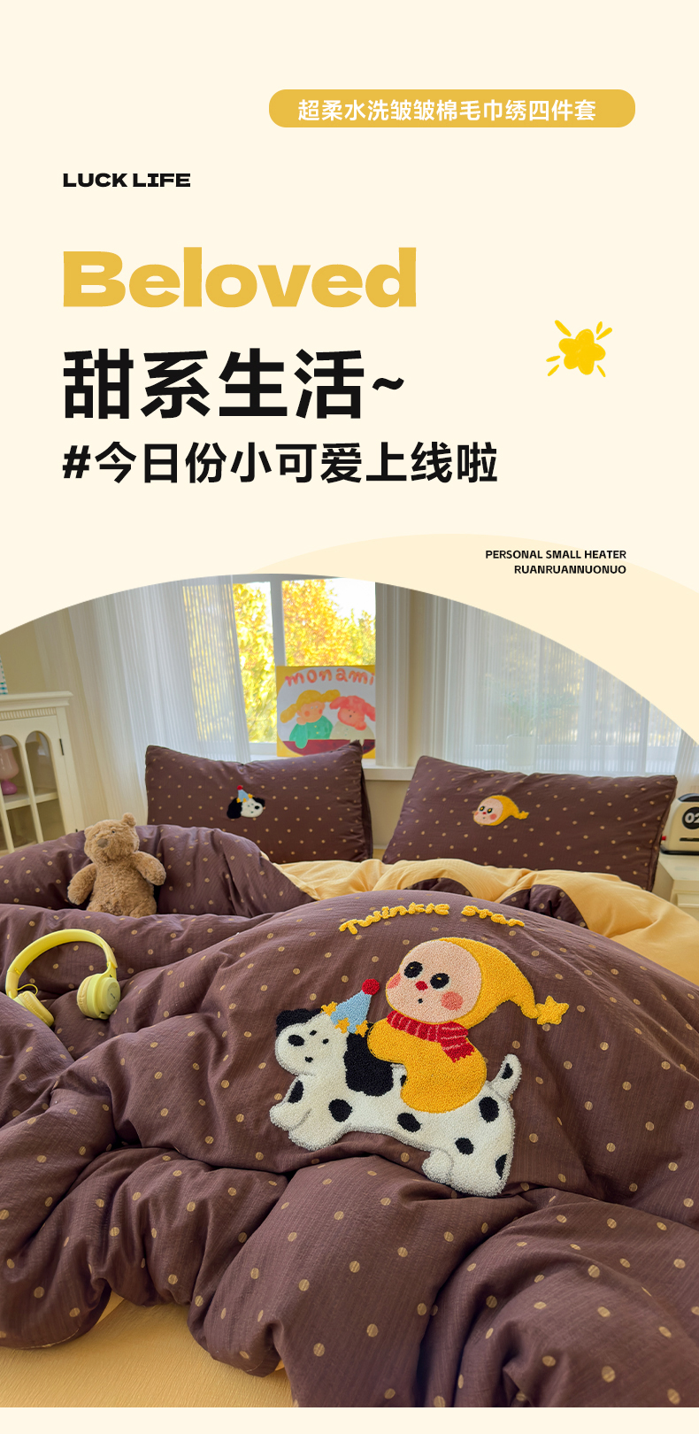商品名称:(总)奈颜 2026新款超柔水洗皱皱棉毛巾绣四件套
