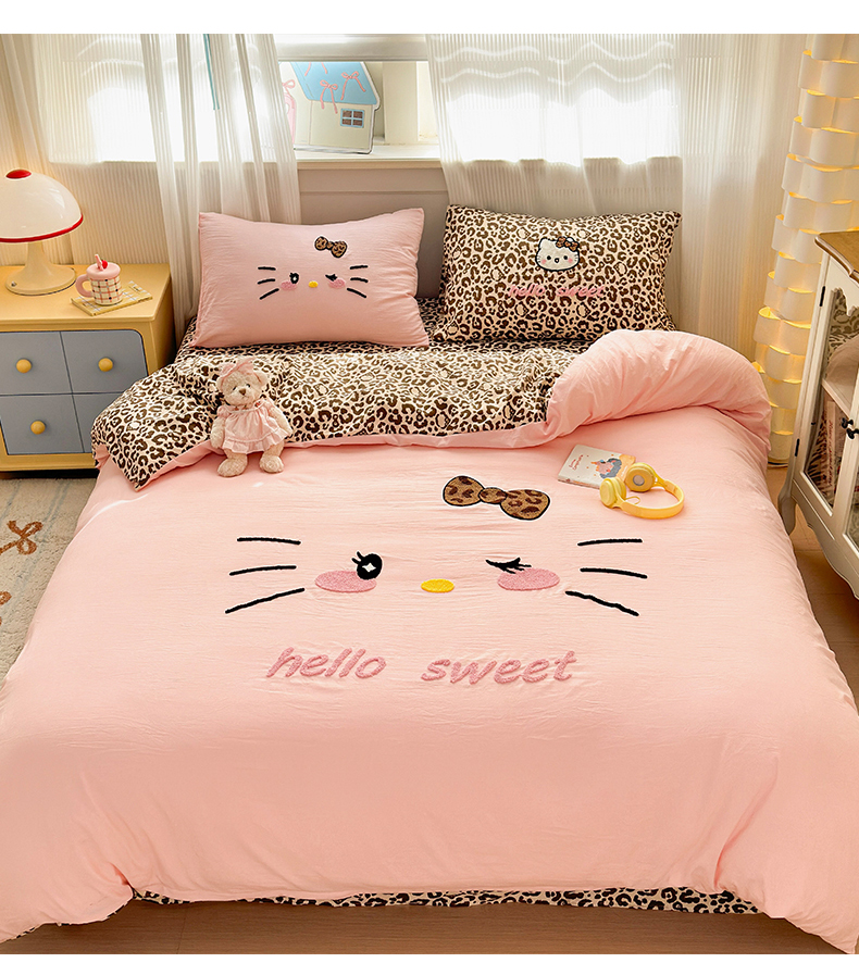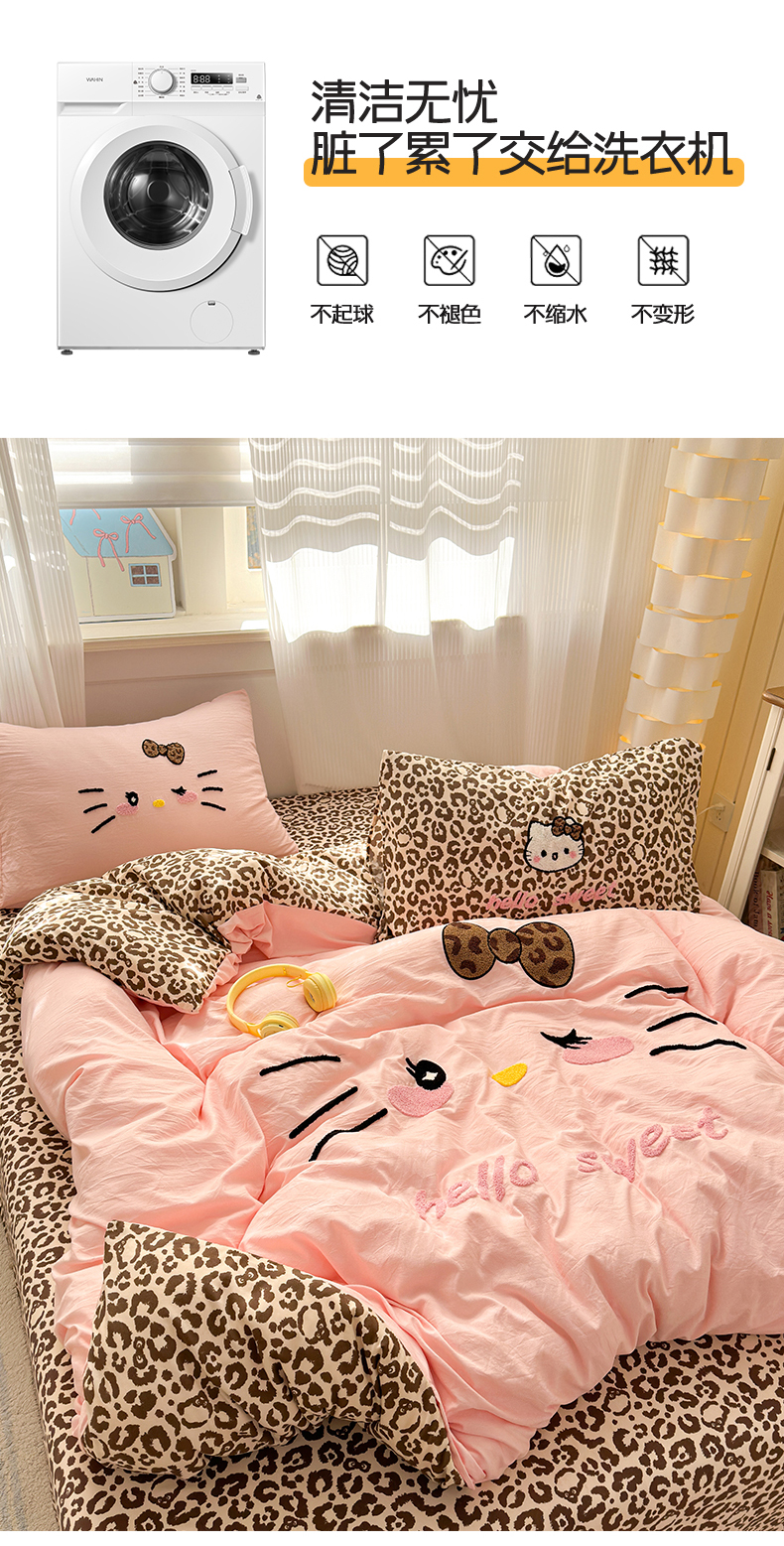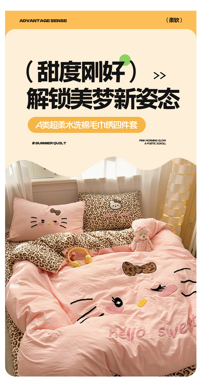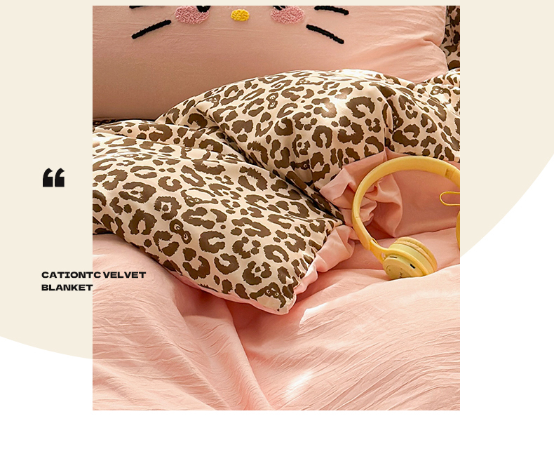 当前位置: 91家纺网 > 商品网购 > 床品套件 > 四件套 > 水洗棉四件套 > 奈颜 2026新款A类水洗棉大版毛巾绣豹纹小猫四件套--影棚图 豹纹小猫-粉咖