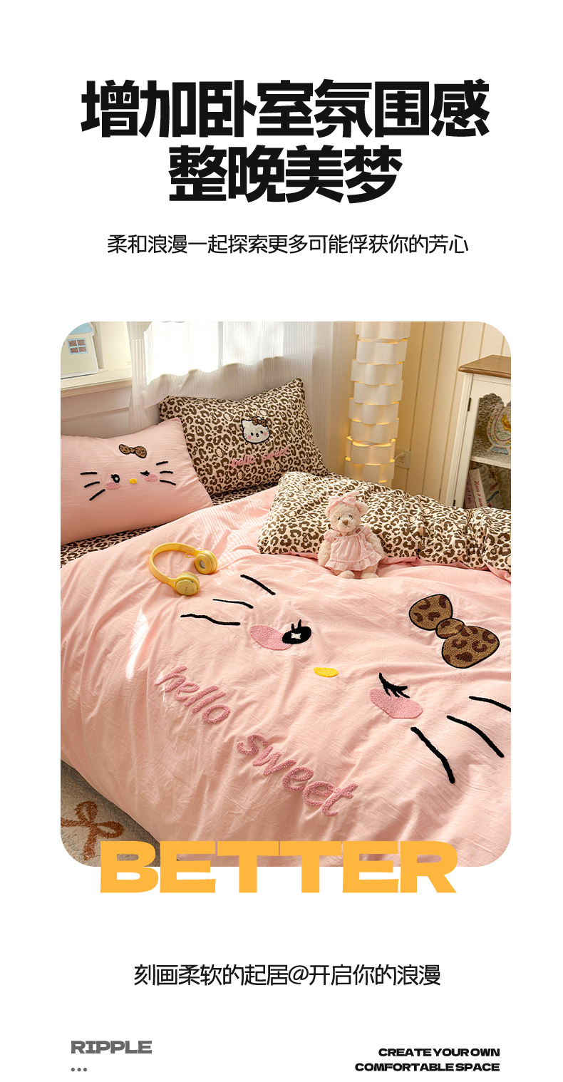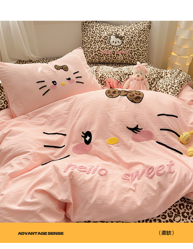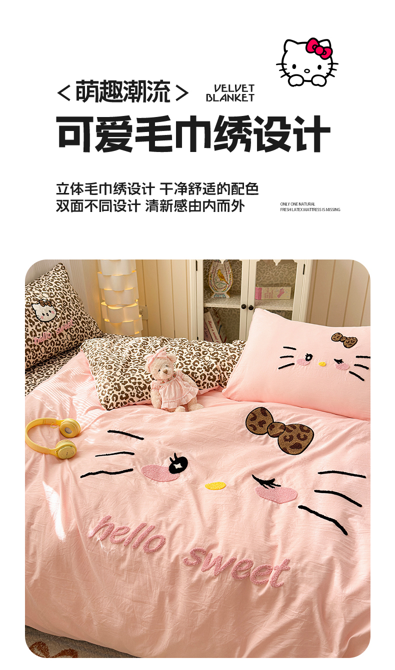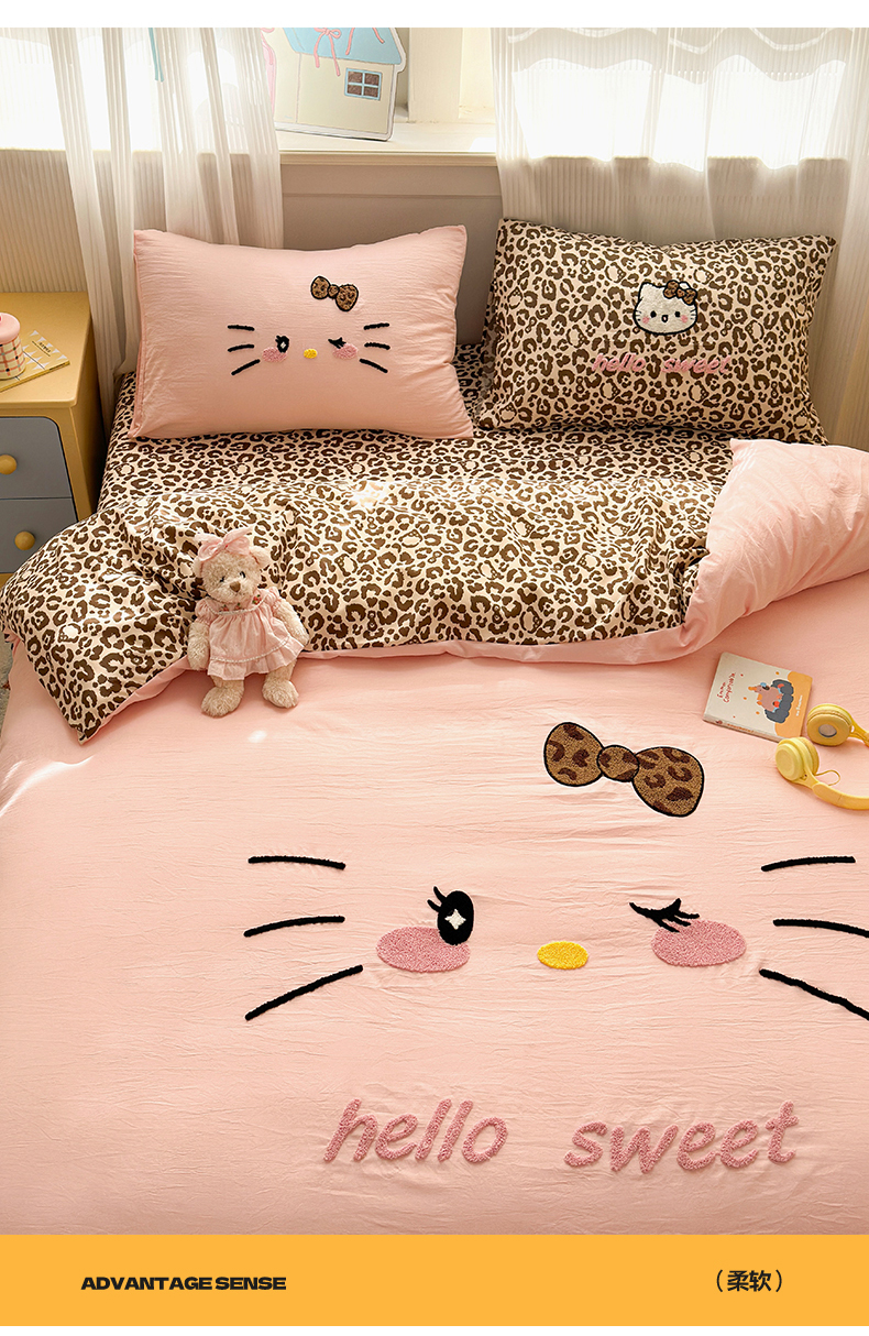 当前位置: 91家纺网 > 商品网购 > 床品套件 > 四件套 > 水洗棉四件套 > 奈颜 2026新款A类水洗棉大版毛巾绣豹纹小猫四件套--影棚图 豹纹小猫-粉咖