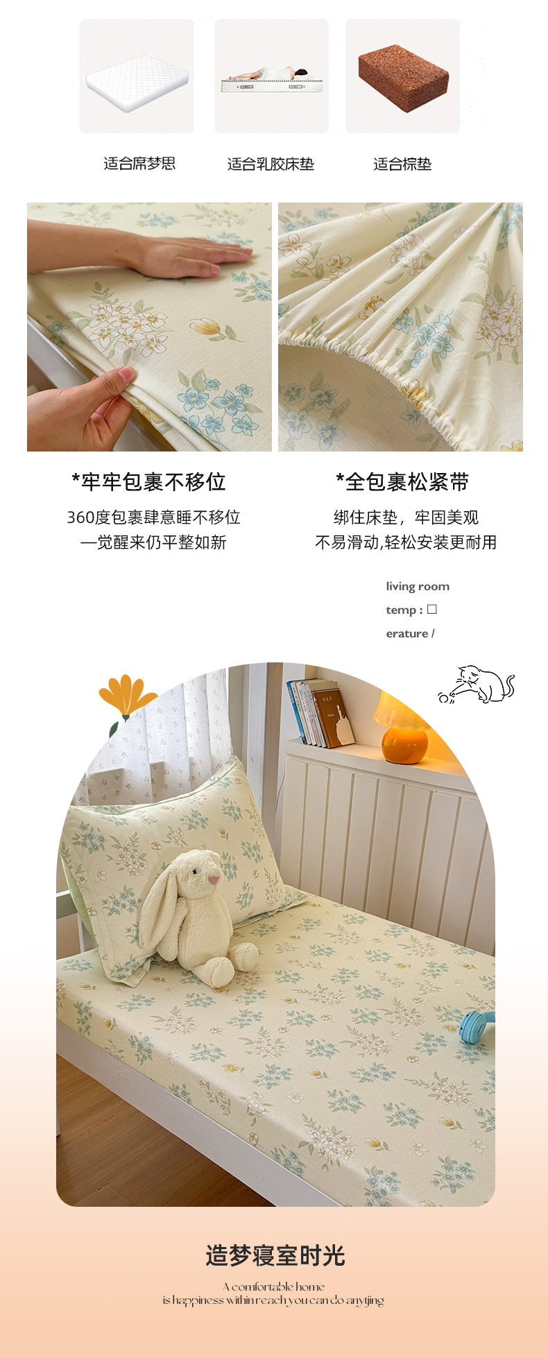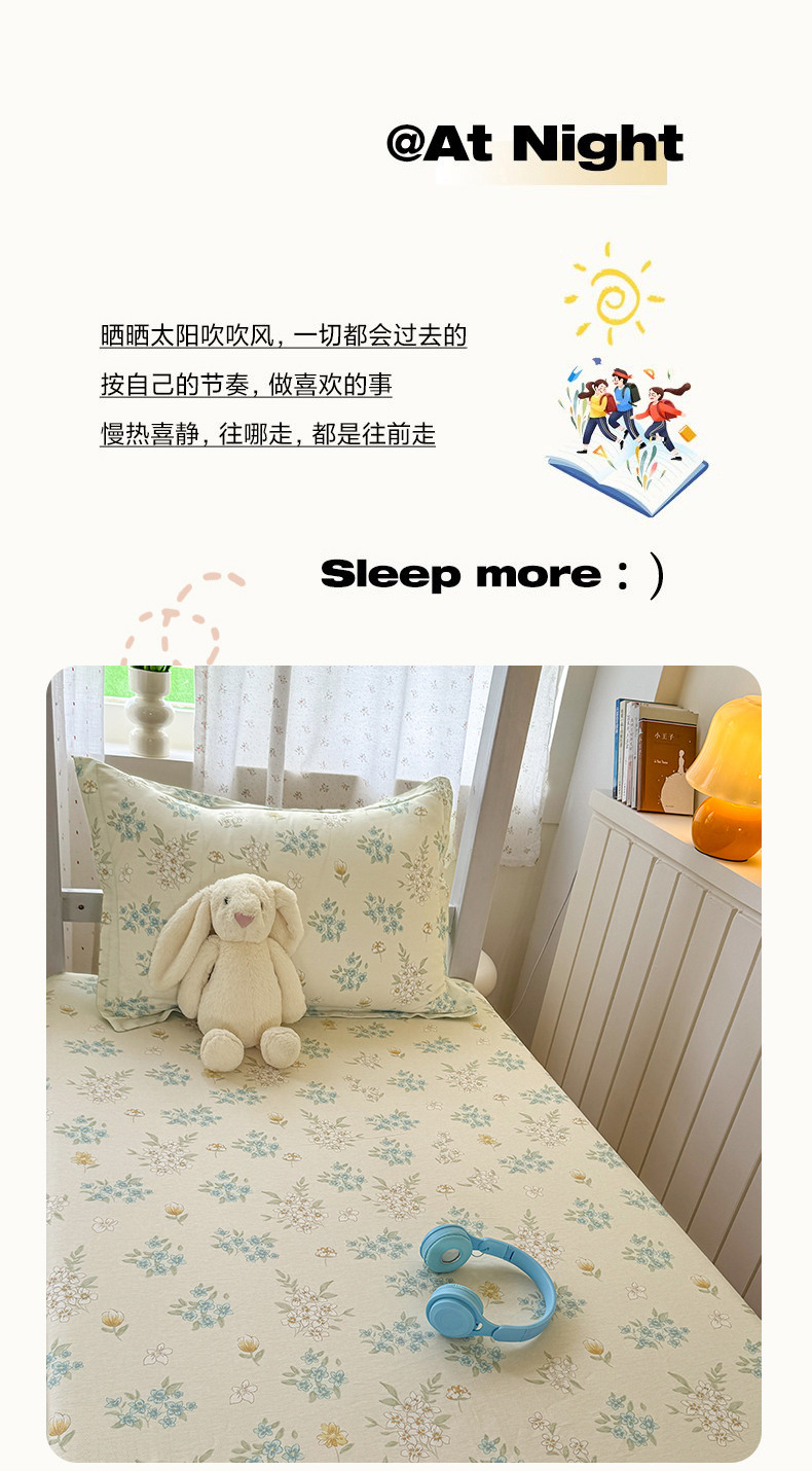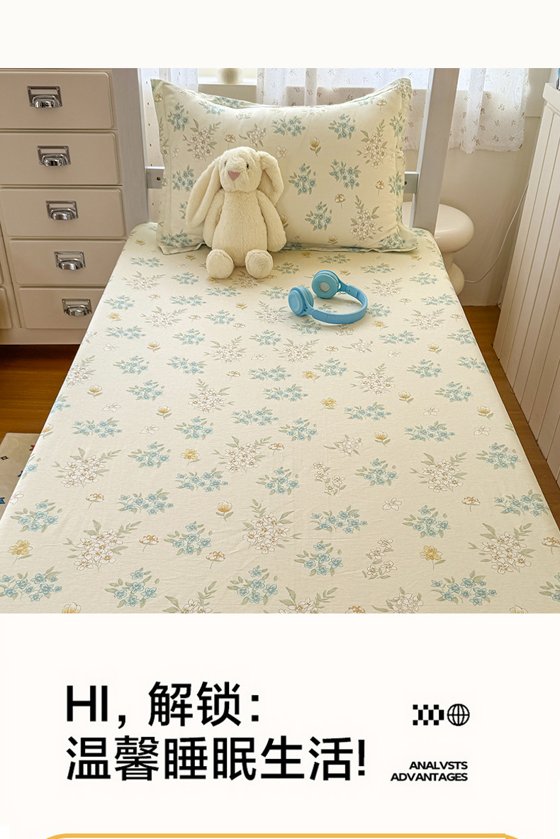 尚帛 2026新款全棉品质喷气印花爆款四件套 多规格套件 单品系列-学生款单床笠 春漫庭