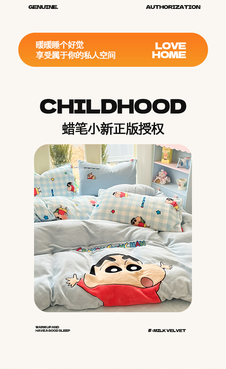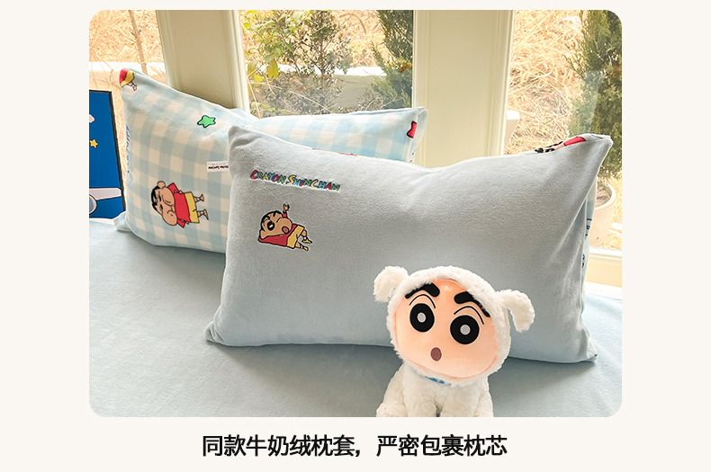 (总)桃子家居 2026新款A类蜡笔小新正版授权卡通加厚高克重牛奶绒系列四件套,绒-欢乐小新,绒-蓝格星星小新,绒-贪睡小新,绒-幸福小新