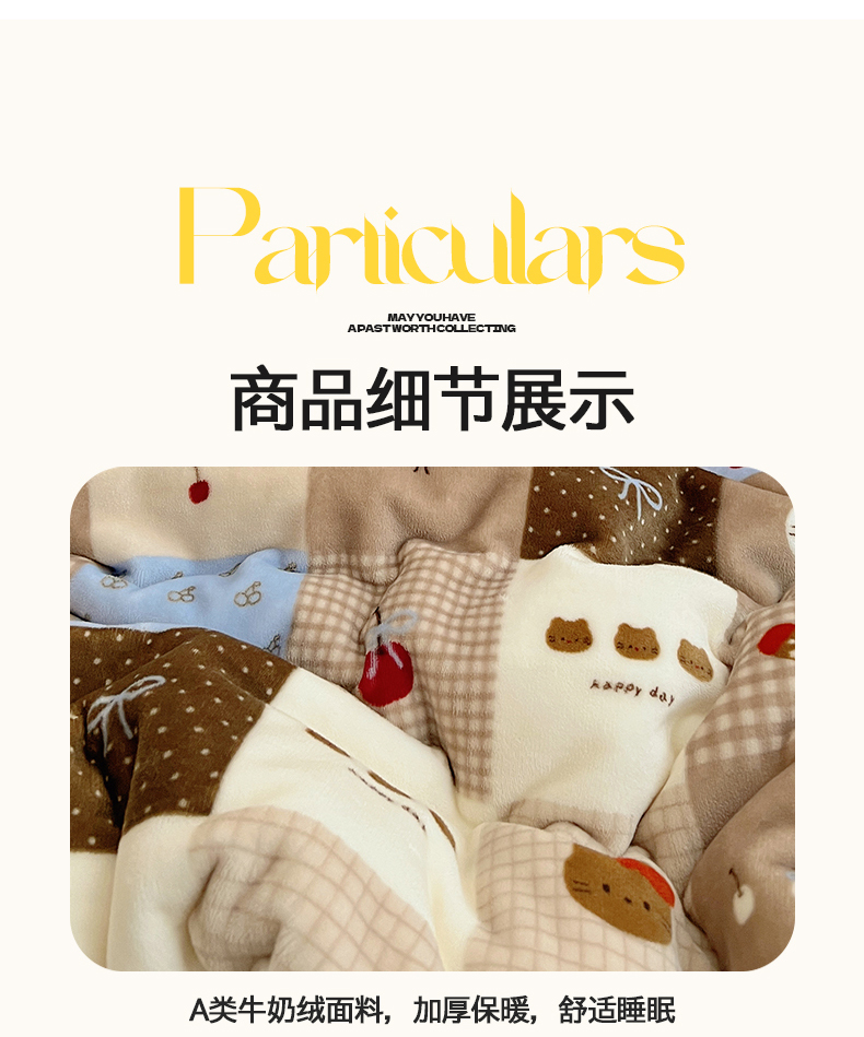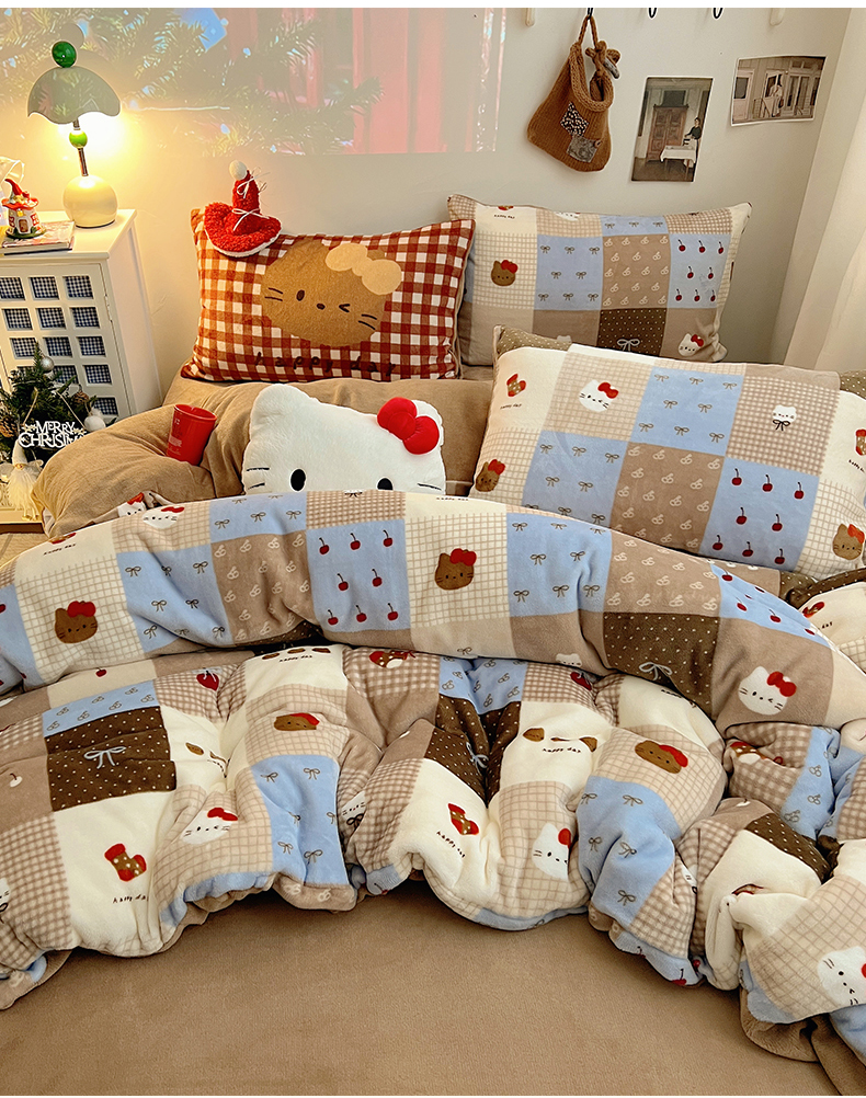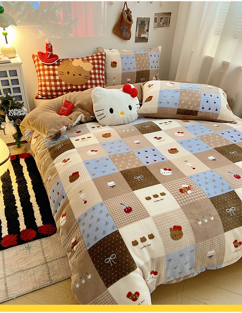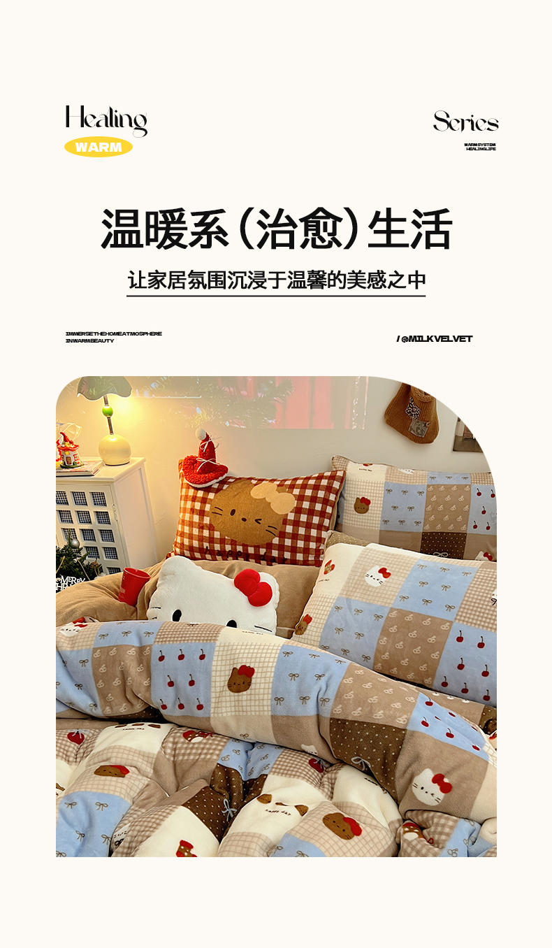 商品名称:桃子家居 2026新款A类数码印花混搭冬季新年限定猫咪小马加厚牛奶绒四件套 绒-樱桃猫猫咖