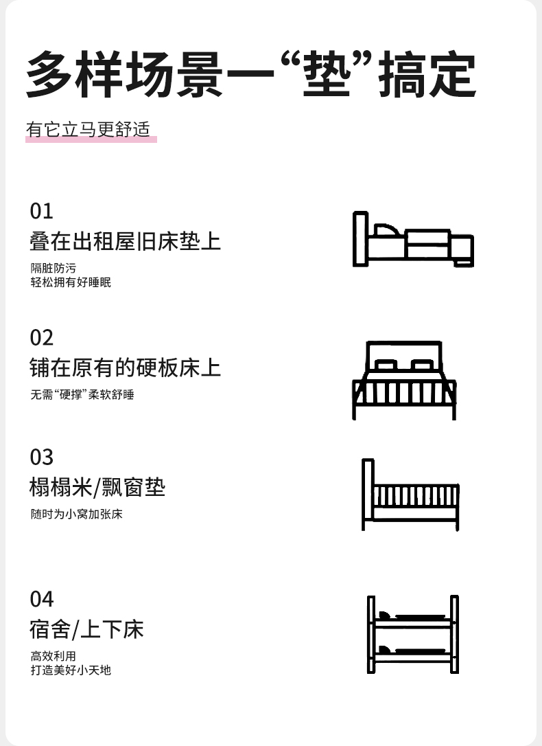 (总)小豚鼠 2025新款-羽丝绒立体床垫学生床垫宿舍单双人床褥榻榻米床垫,白色,粉色,咖色,灰三角,灰色,紫色
