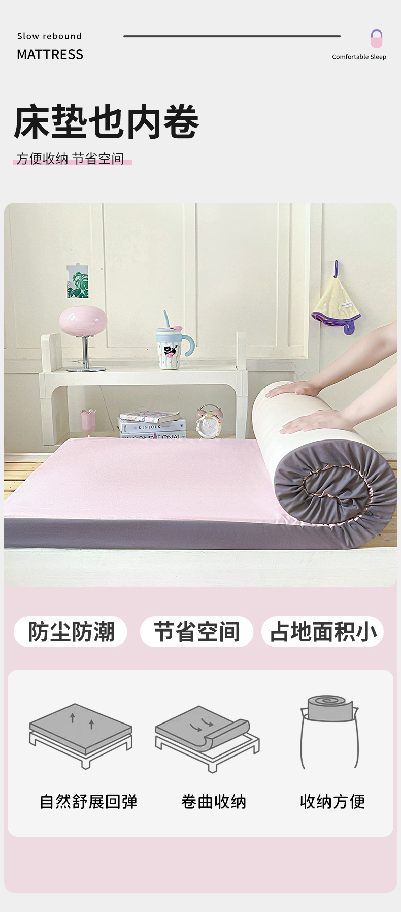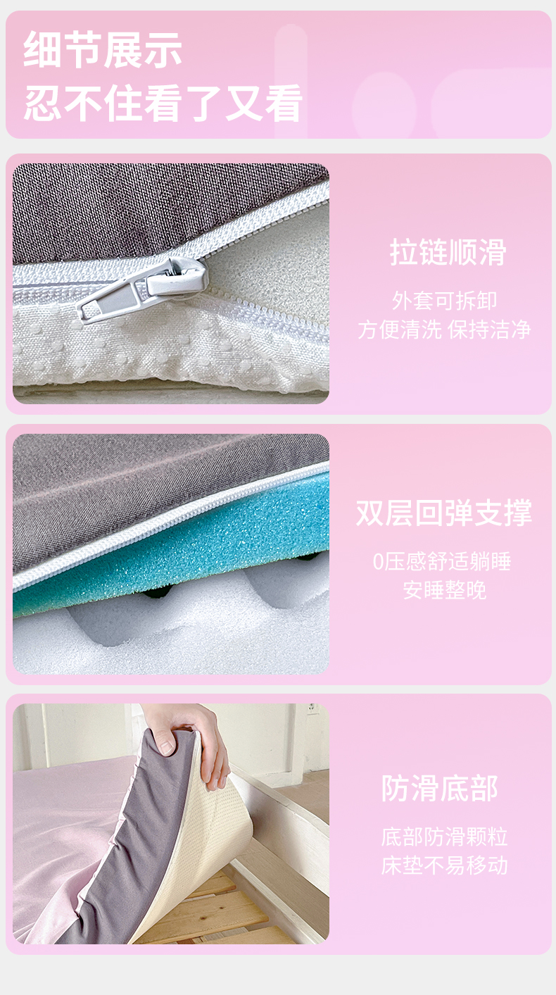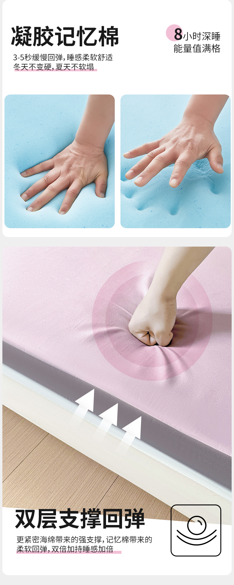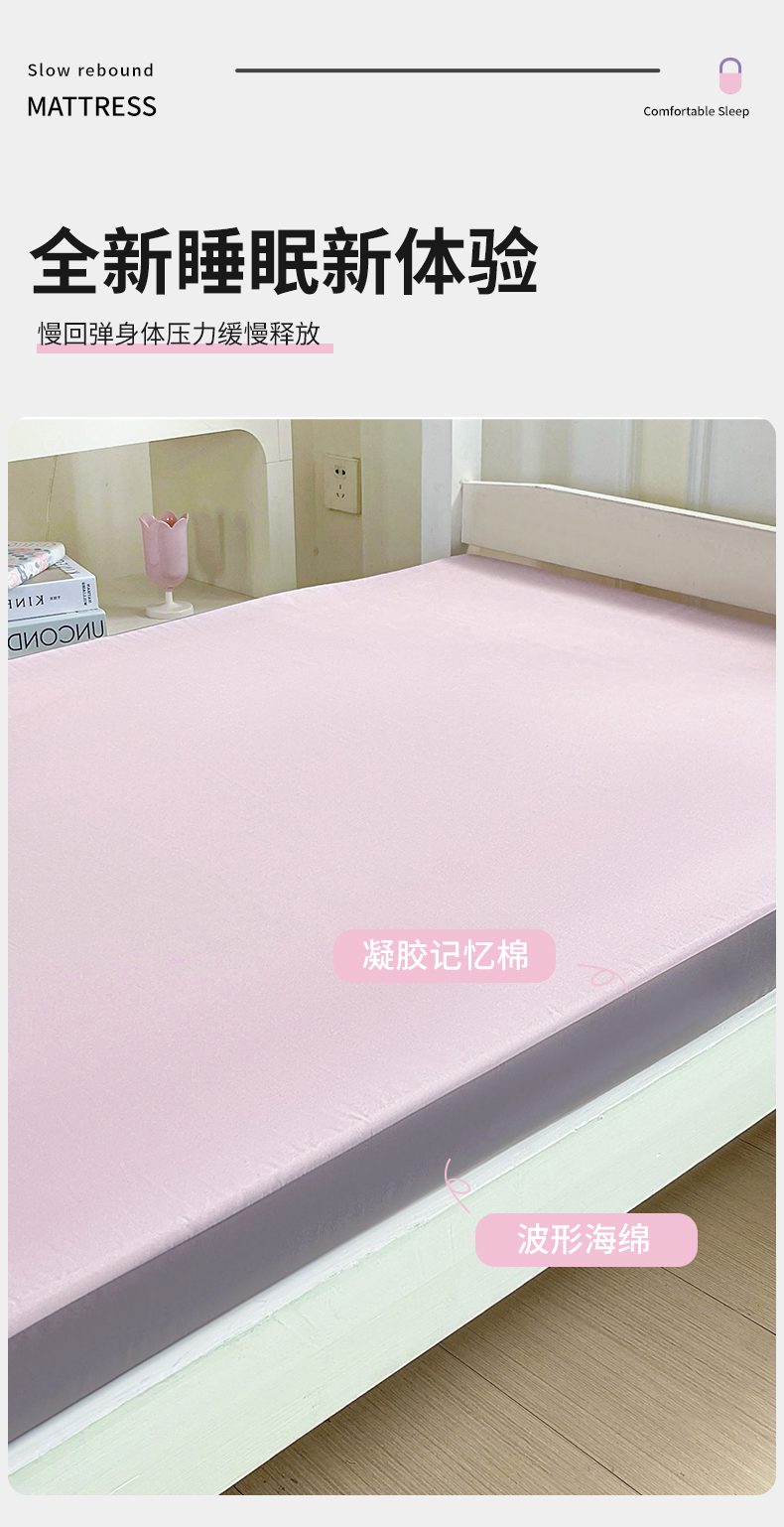 商品名称:小豚鼠 2025新款学生季蛋壳压花床垫记忆棉床垫学生宿舍软垫海绵垫子 藕灰粉