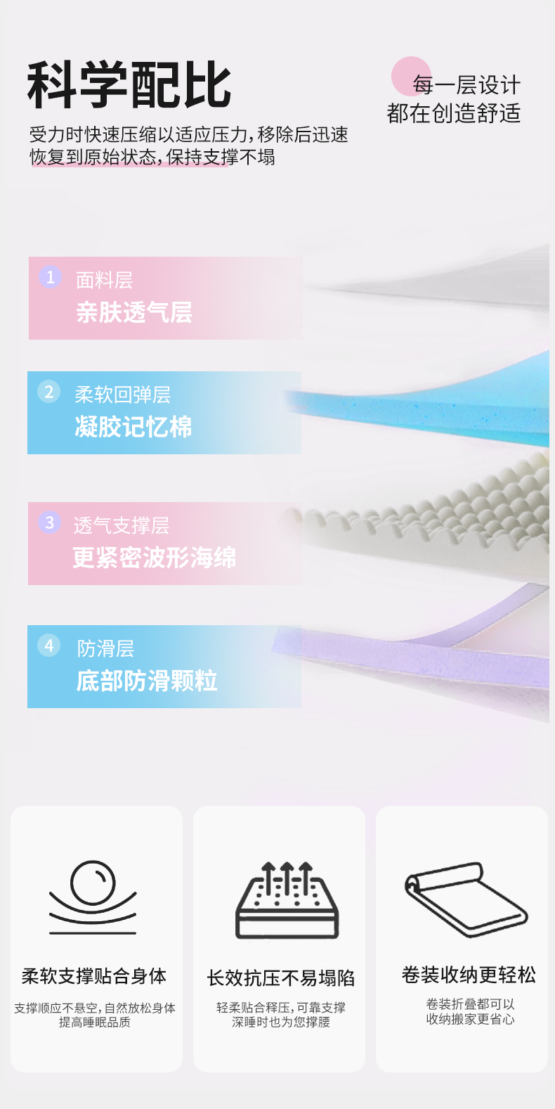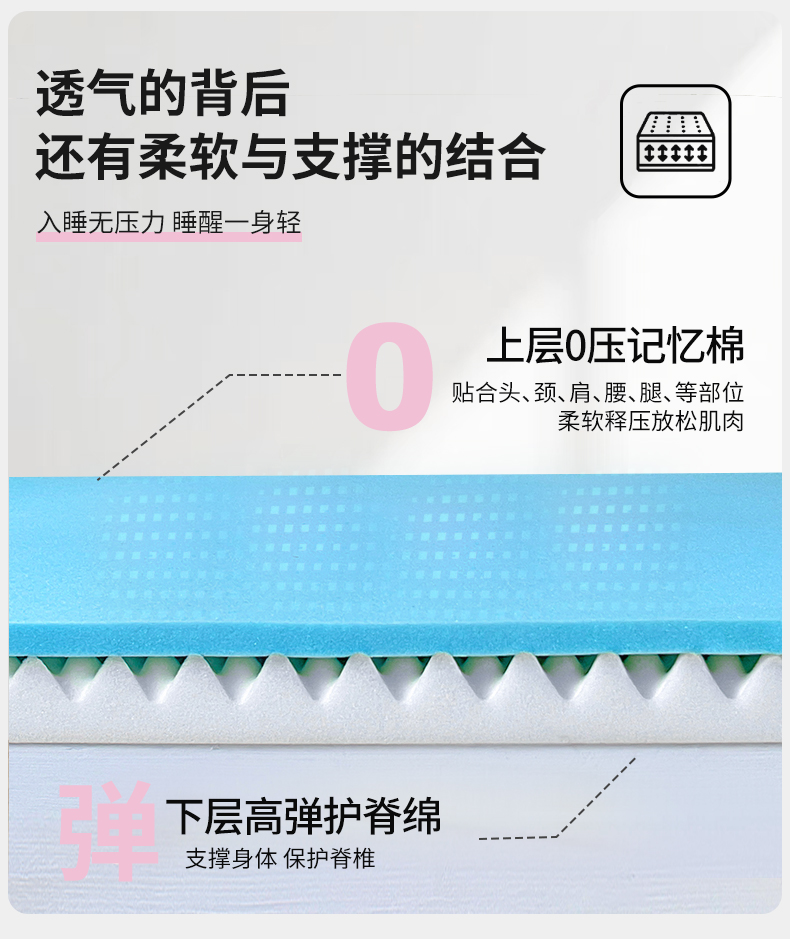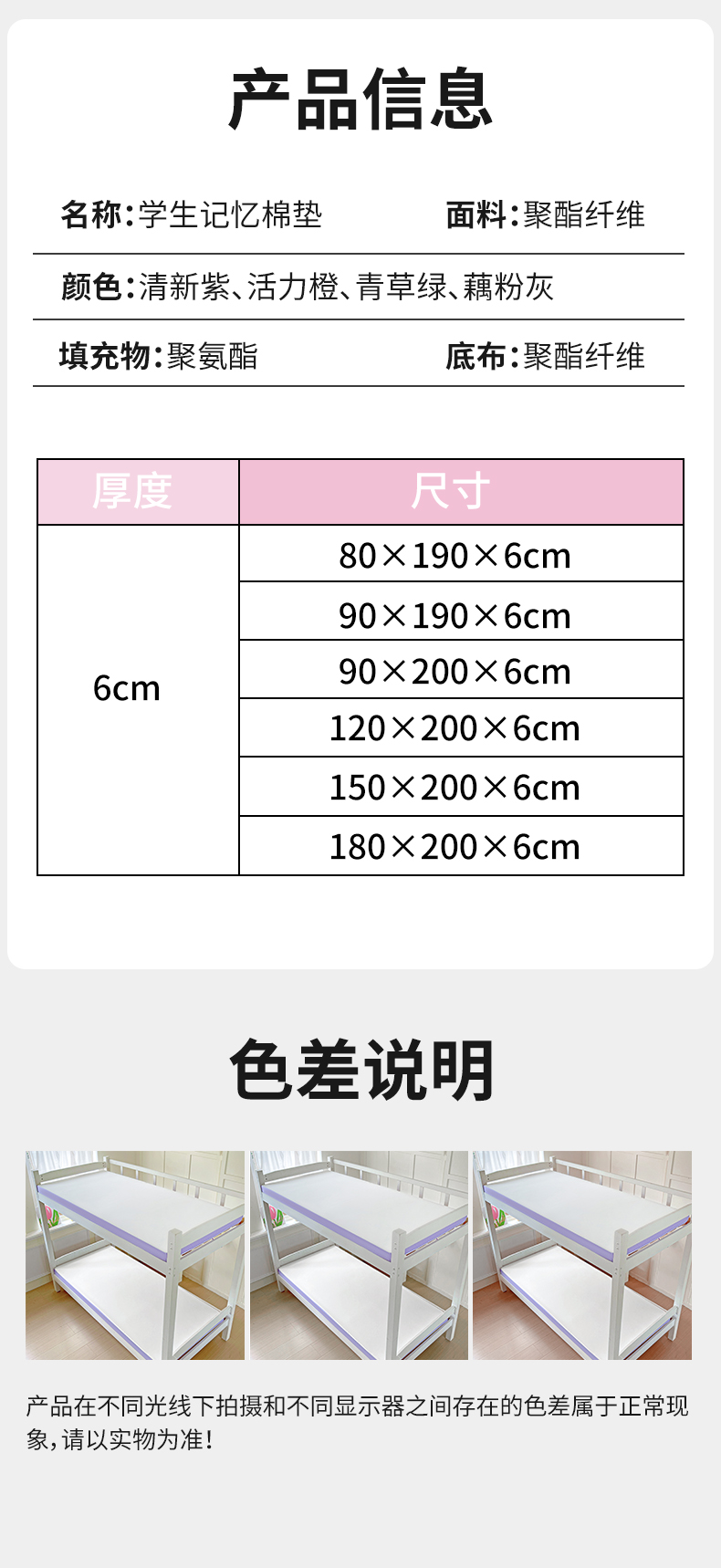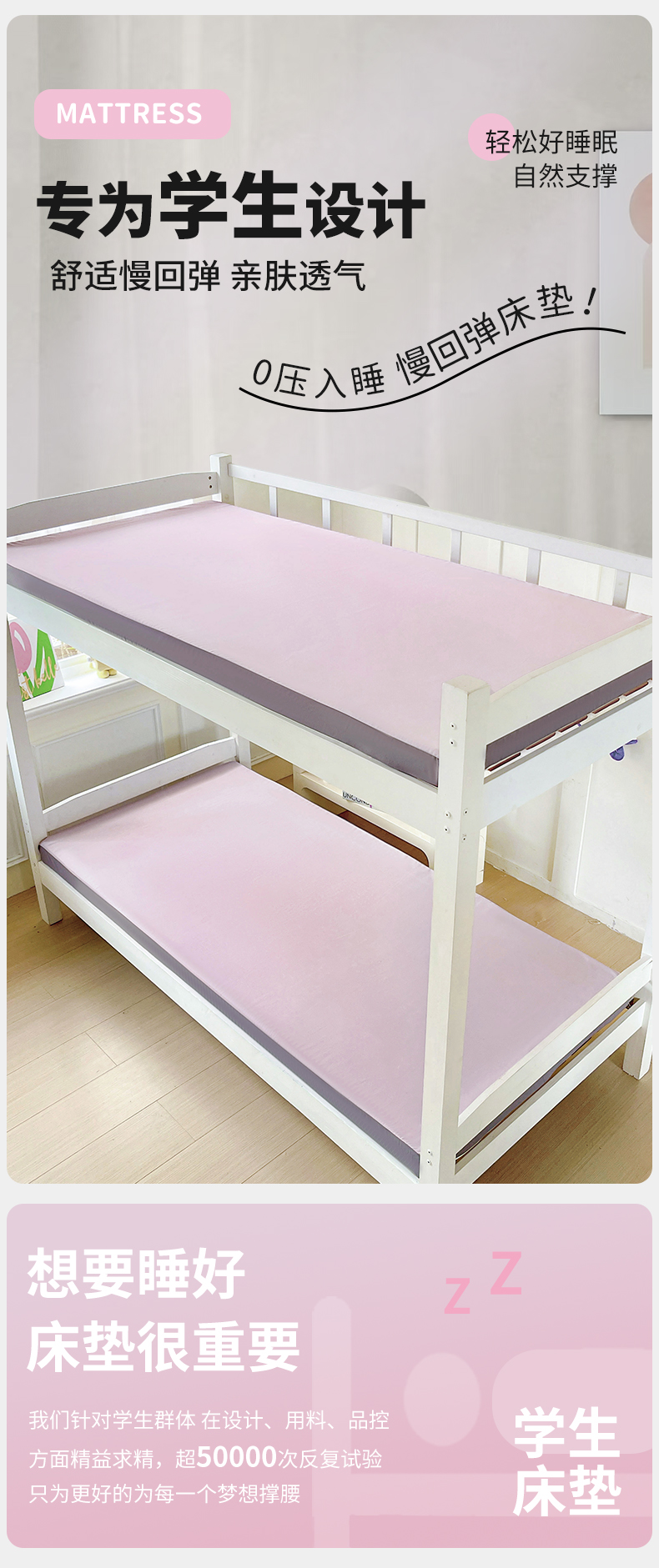 商品名称:小豚鼠 2025新款学生季蛋壳压花床垫记忆棉床垫学生宿舍软垫海绵垫子 藕灰粉