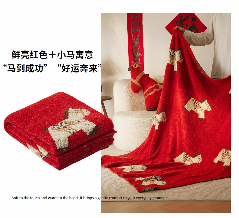 (总)暖绵绵家纺 2026新款软糯半边绒马年盖毯-赤安(券后最低零售价:173元),赤安