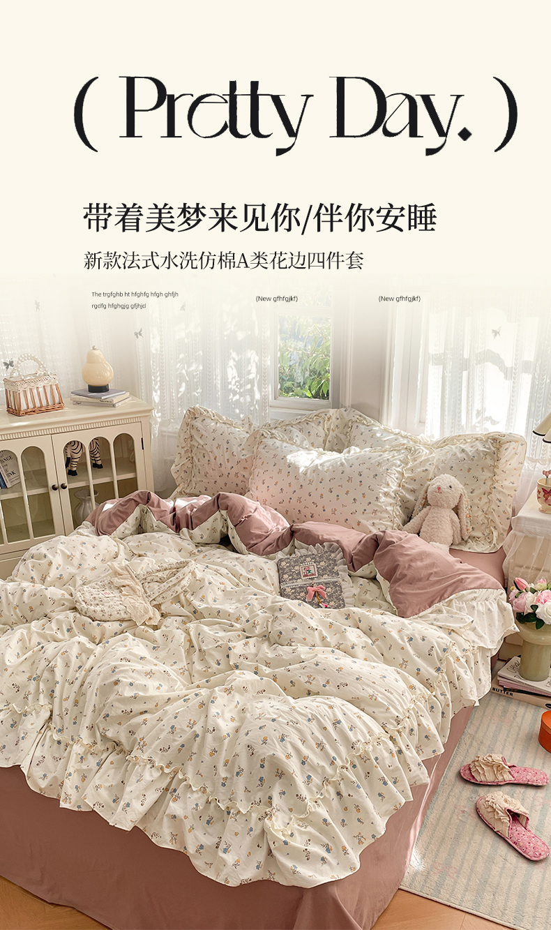 当前位置: 91家纺网 > 商品网购 > 床品套件 > 四件套 > 其它四件套 > 优尚佳生活馆 2026新款A类仿棉水洗法式工艺花边四件套 鸳尾轻眠