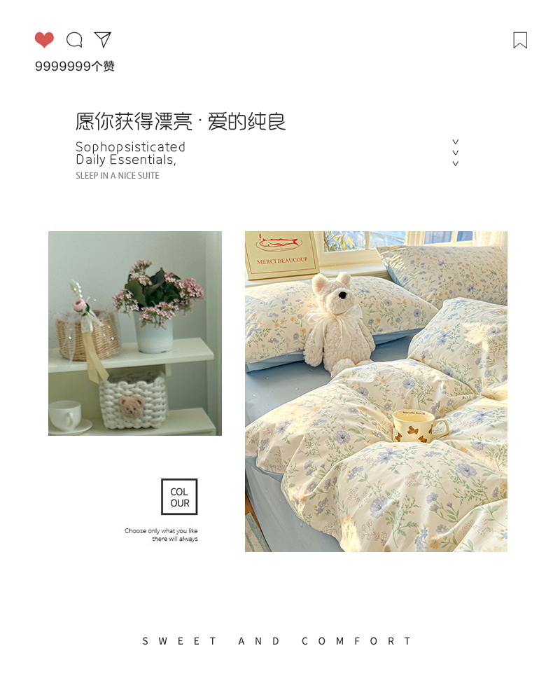 当前位置: 91家纺网 > 商品网购 > 床品套件 > 四件套 > 全棉普通四件套 > 瑞莱 2026新款全棉印花13070花卉系列四件套 镜花缘