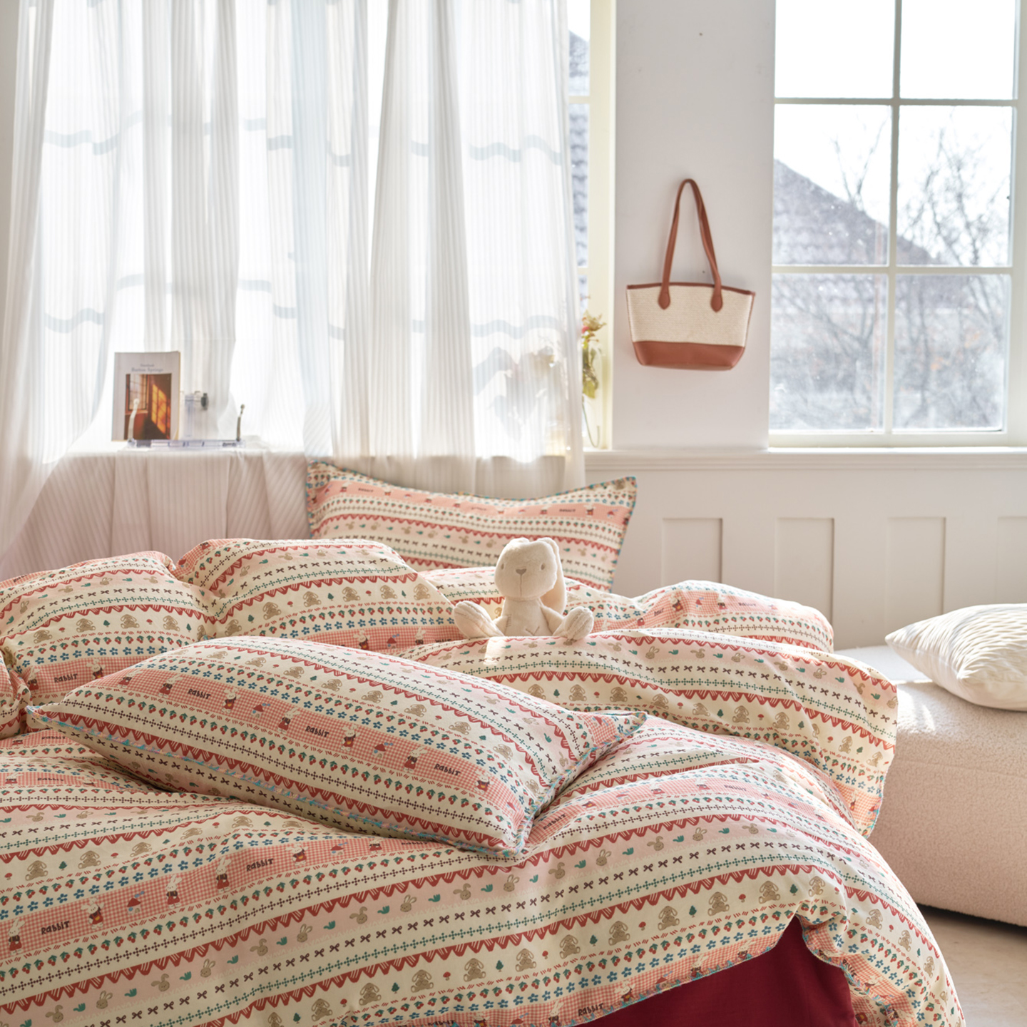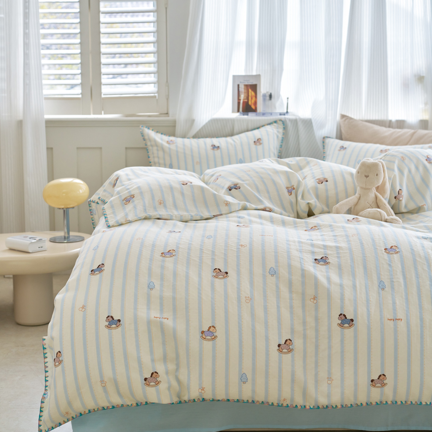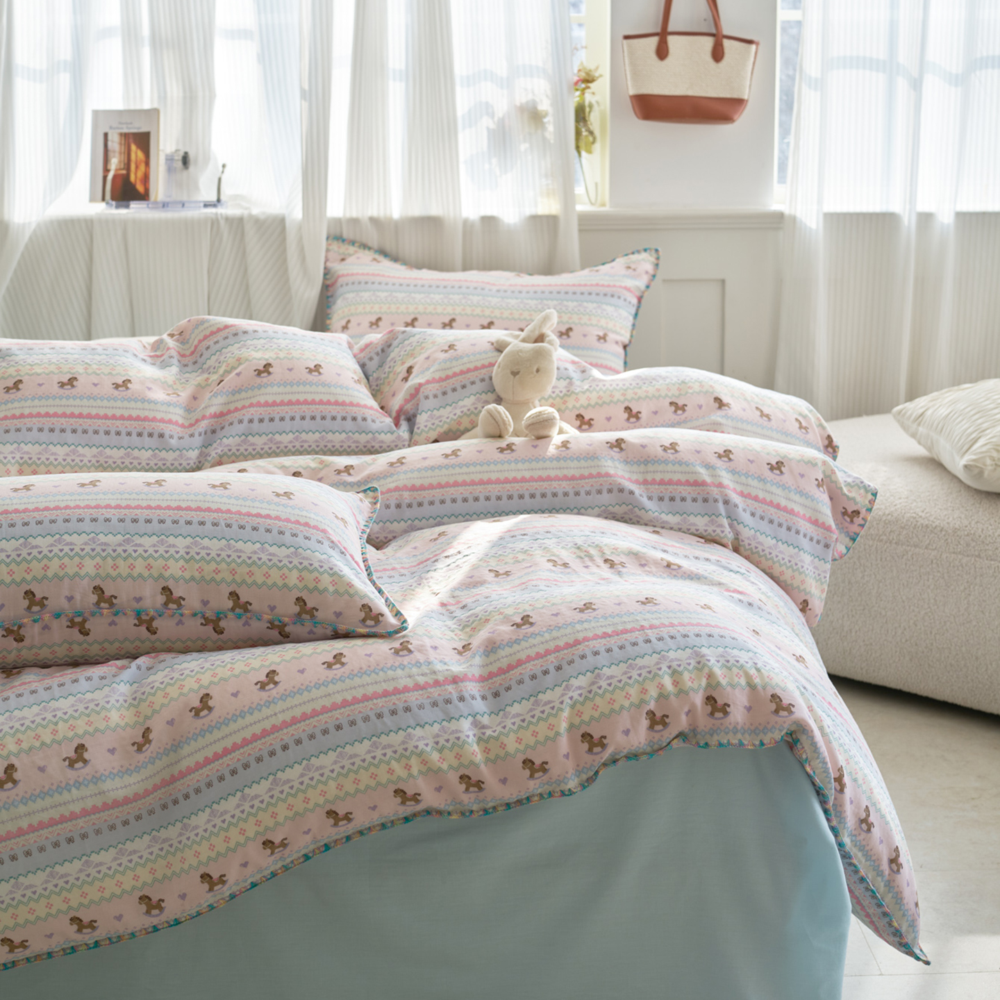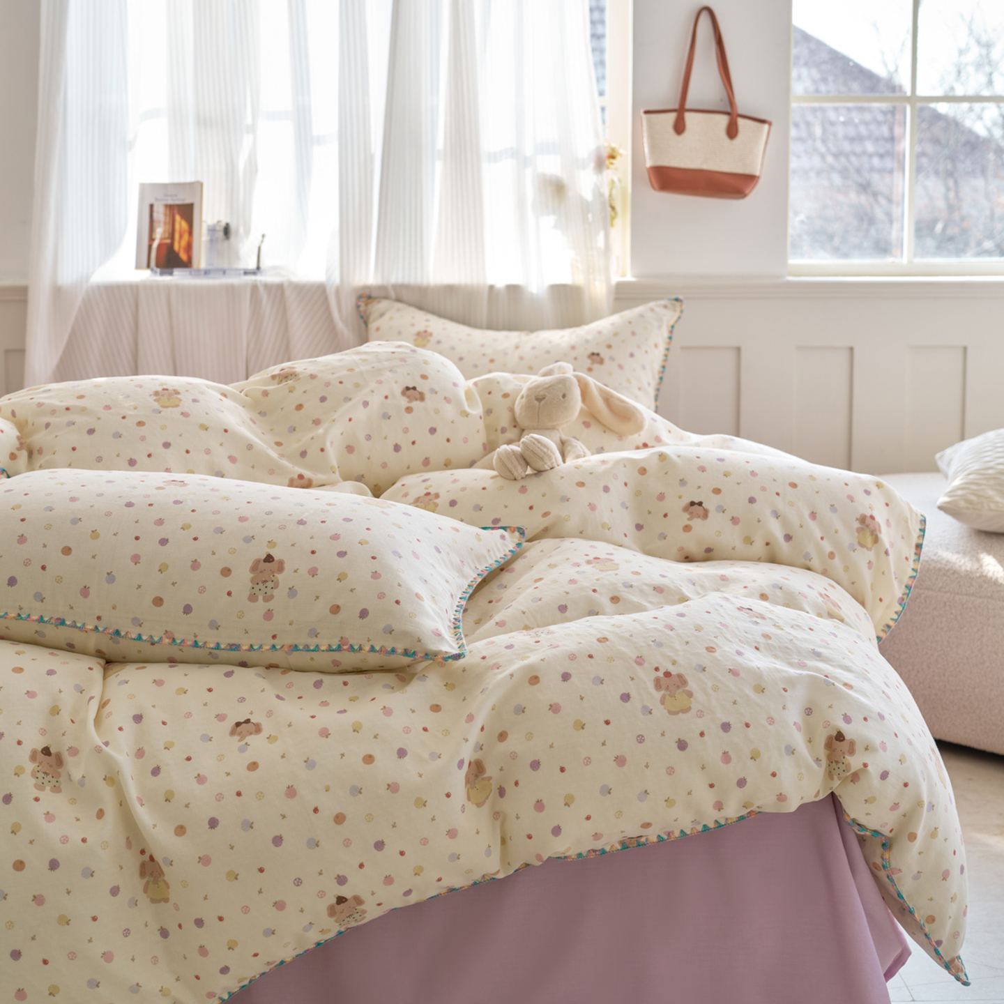 (总)洋铭区(原狠狠爱) 2026新款春季全棉彩边双层纱四件套,爱心宝莉,波斯小懒狗,繁花兔兔,格格小熊,海蓝小木马,红格小马,红枣小兔,花朵兔兔,焦糖小熊,兰花香,绿芽小马,萌宠小分队,奶茶蝴蝶结,奶糕熊熊,汽车派对,桃桃粉花,甜果小象,图图小狮子,幸运小可爱,熊猫嘟嘟,遇见粉花,月光宝宝