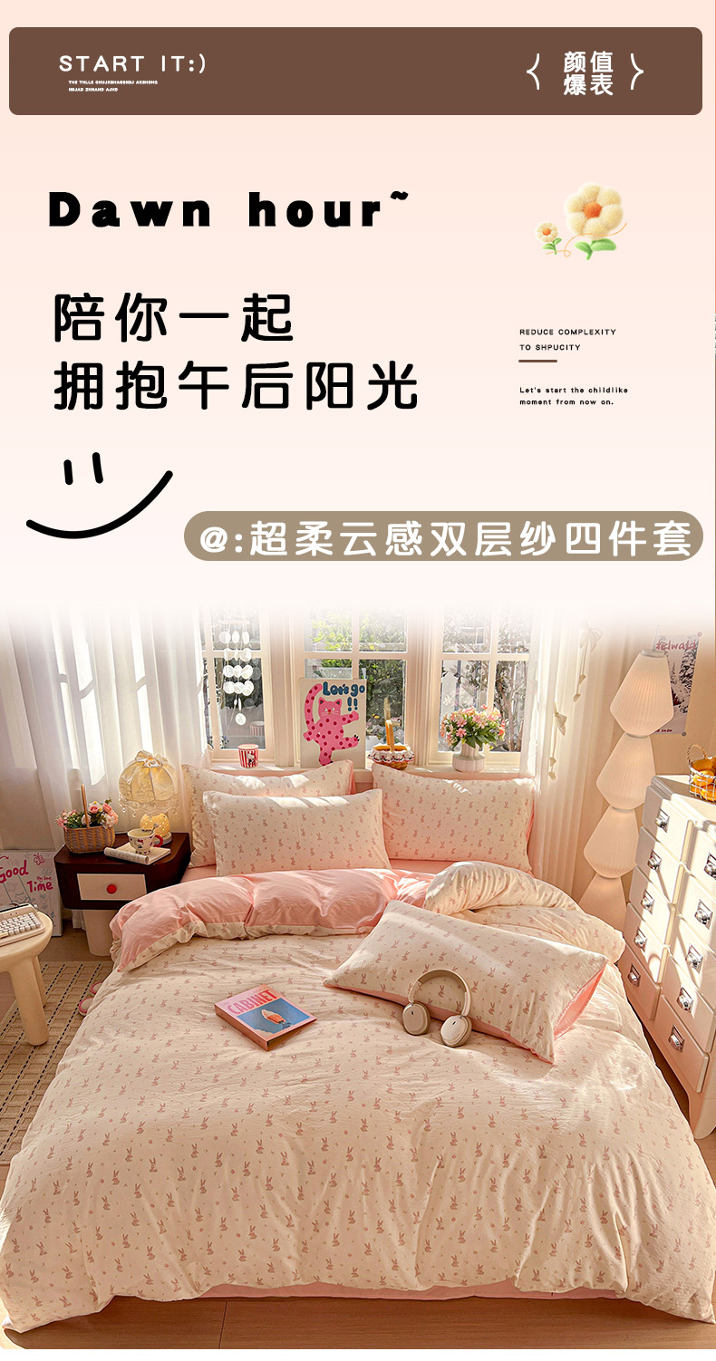 当前位置: 91家纺网 > 商品网购 > 床品套件 > 四件套 > 双层纱四件套 > 水木坊 2026春夏新款云感双层纱可爱系列四件套 豹纹小猫-咖