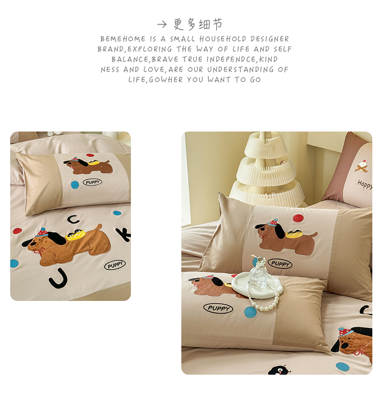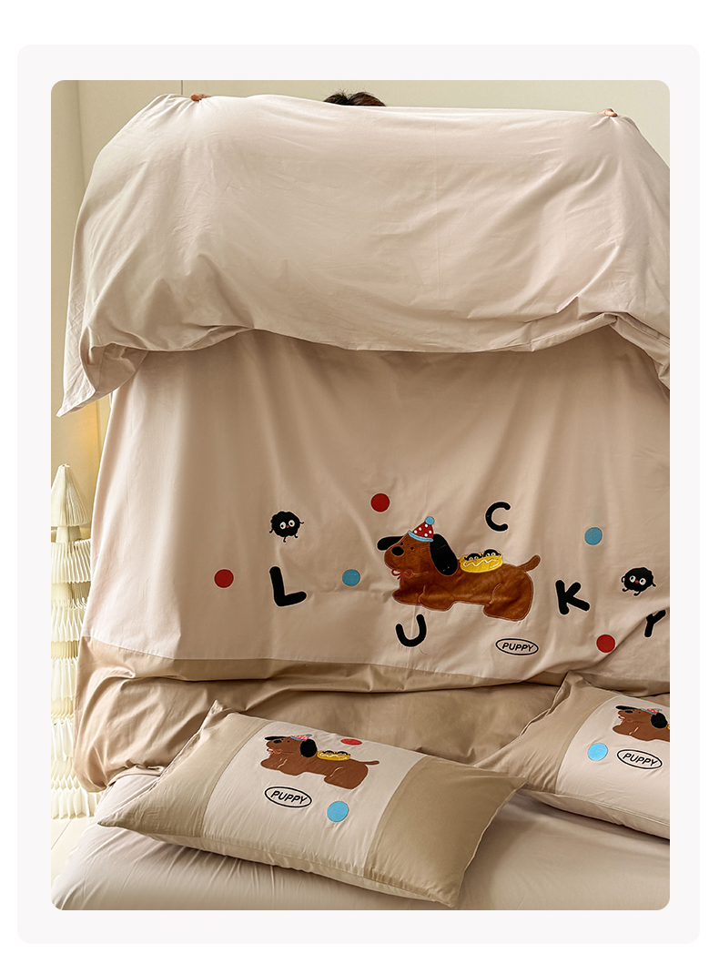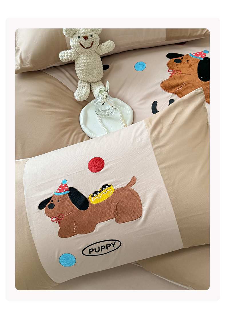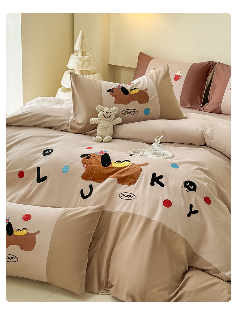 (总)波比可可 2026新款全棉纯棉可爱刺绣四件套,PUPPY狗,花花女孩,魔法小风车,啤酒熊,蛙蛙女孩,小包包,郁金香