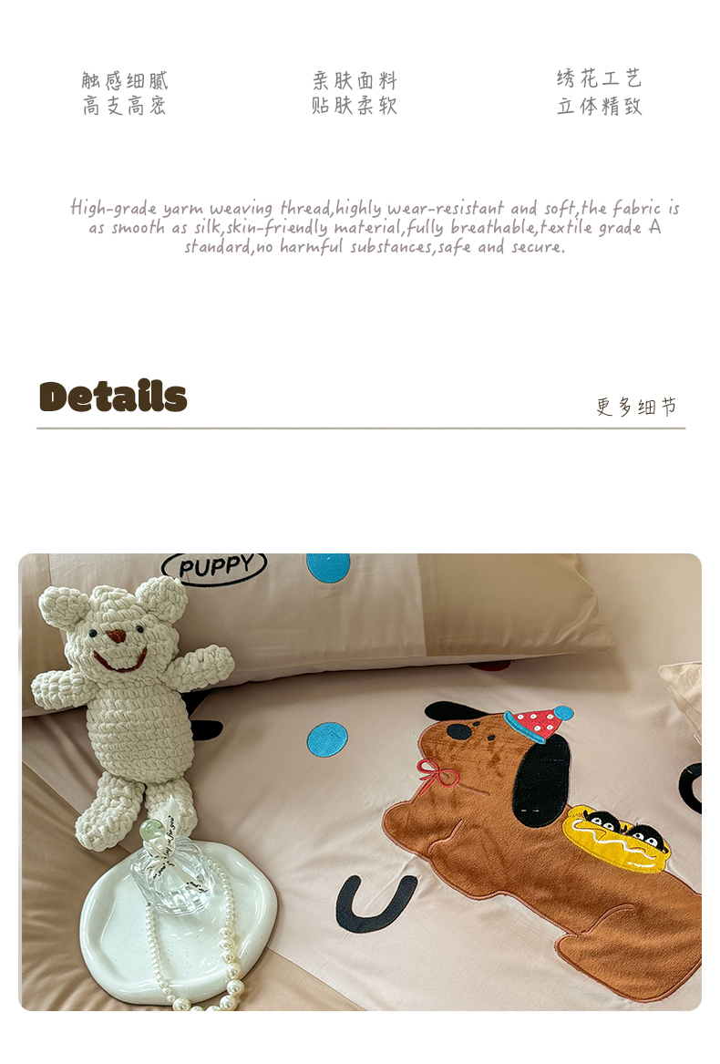 (总)波比可可 2026新款50s长绒棉纯棉全棉居家轻奢刺绣四件套,小比熊,花卉,咖啡猫,快乐狗,快乐喵,礼物,兔子