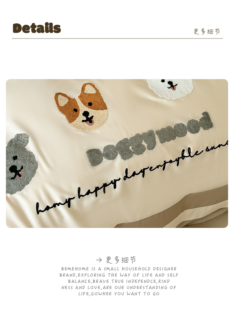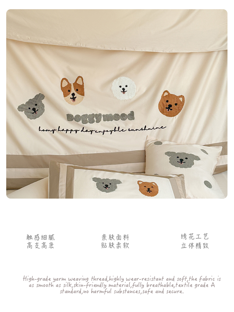 商品名称:波比可可 2026新款50s长绒棉纯棉全棉居家轻奢刺绣四件套 快乐狗