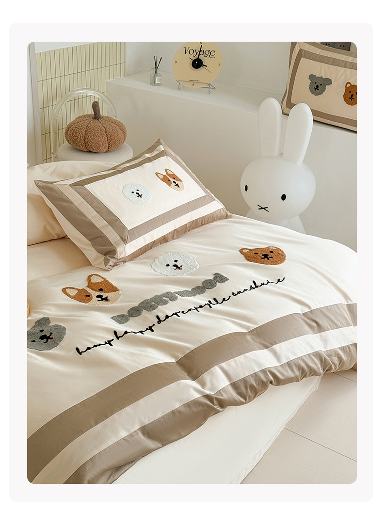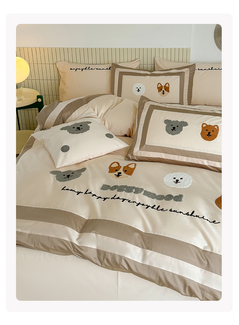 波比可可 2026新款50s长绒棉纯棉全棉居家轻奢刺绣四件套 快乐狗
