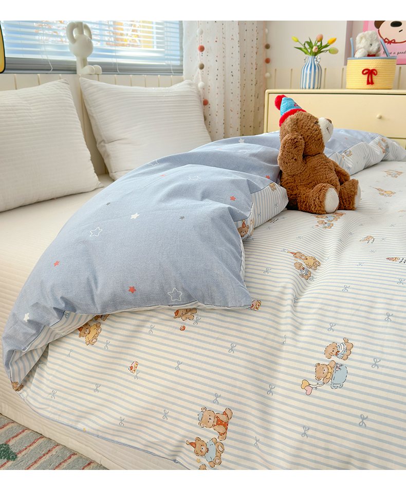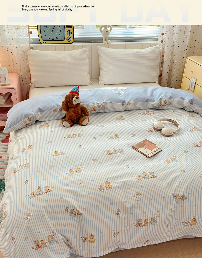 梵克保罗 2026春夏新款ins小清新40支全棉13372四件套学生三件套单被套单枕套系列-第二批(单被套) 幸福小熊