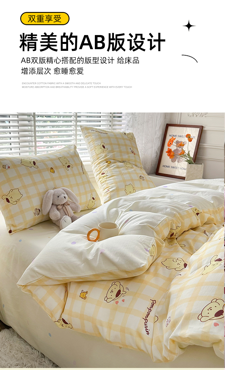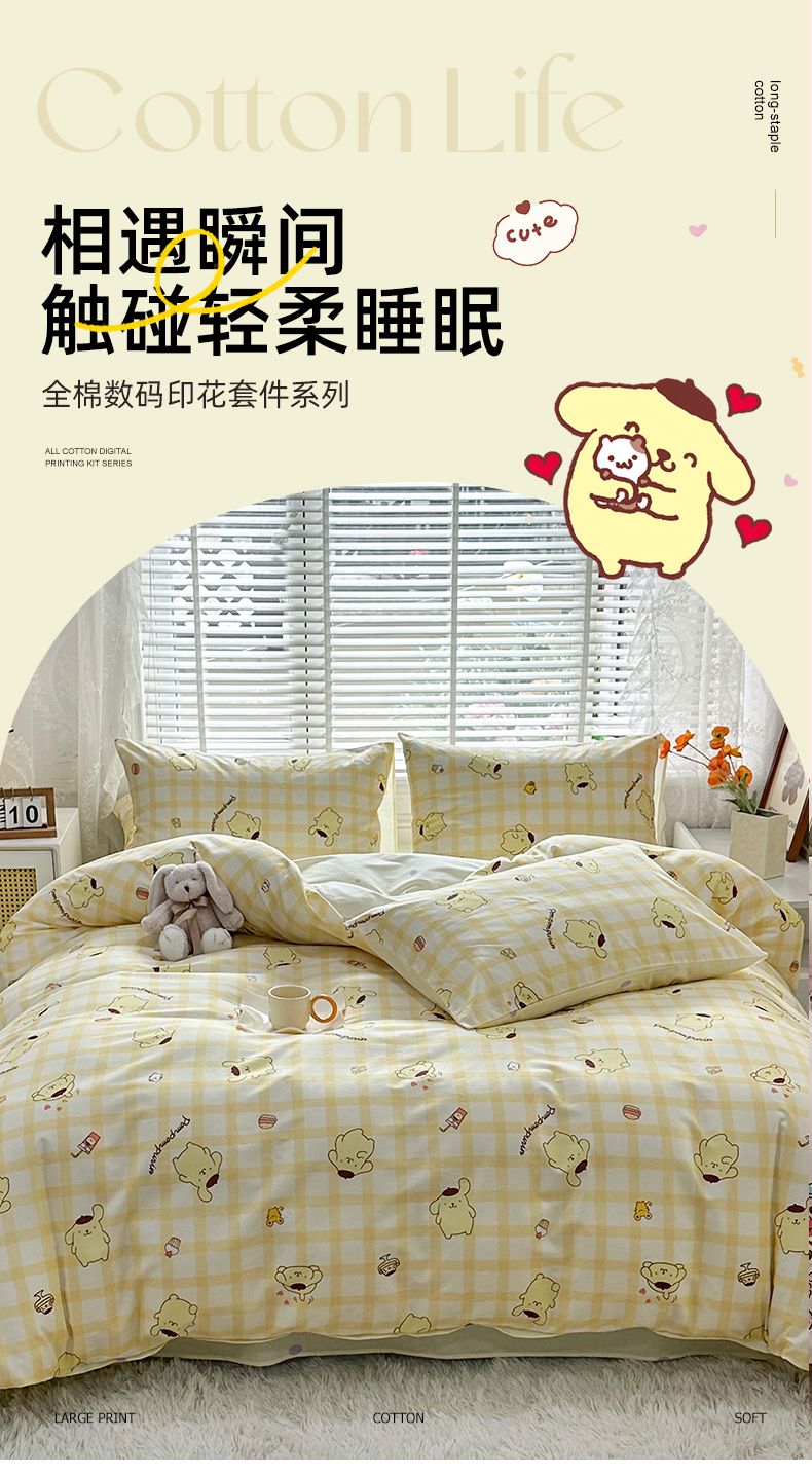 当前位置: 91家纺网 > 商品网购 > 床品套件 > 四件套 > 全棉普通四件套 > 玉元坊 2026新款正版授权三丽鸥系列全棉纯棉床单四件套学生三件套-大耳狗帕恰狗布丁狗系列 焦糖布丁狗【简约款】