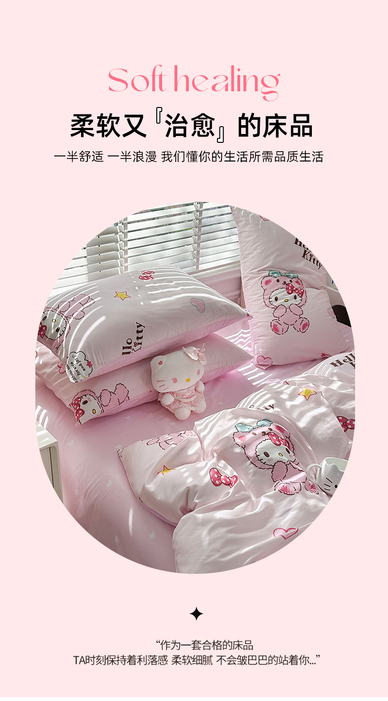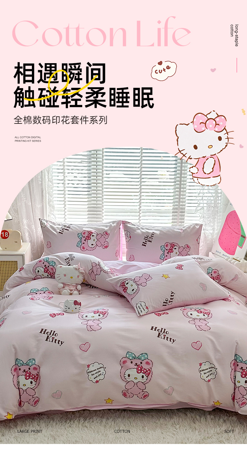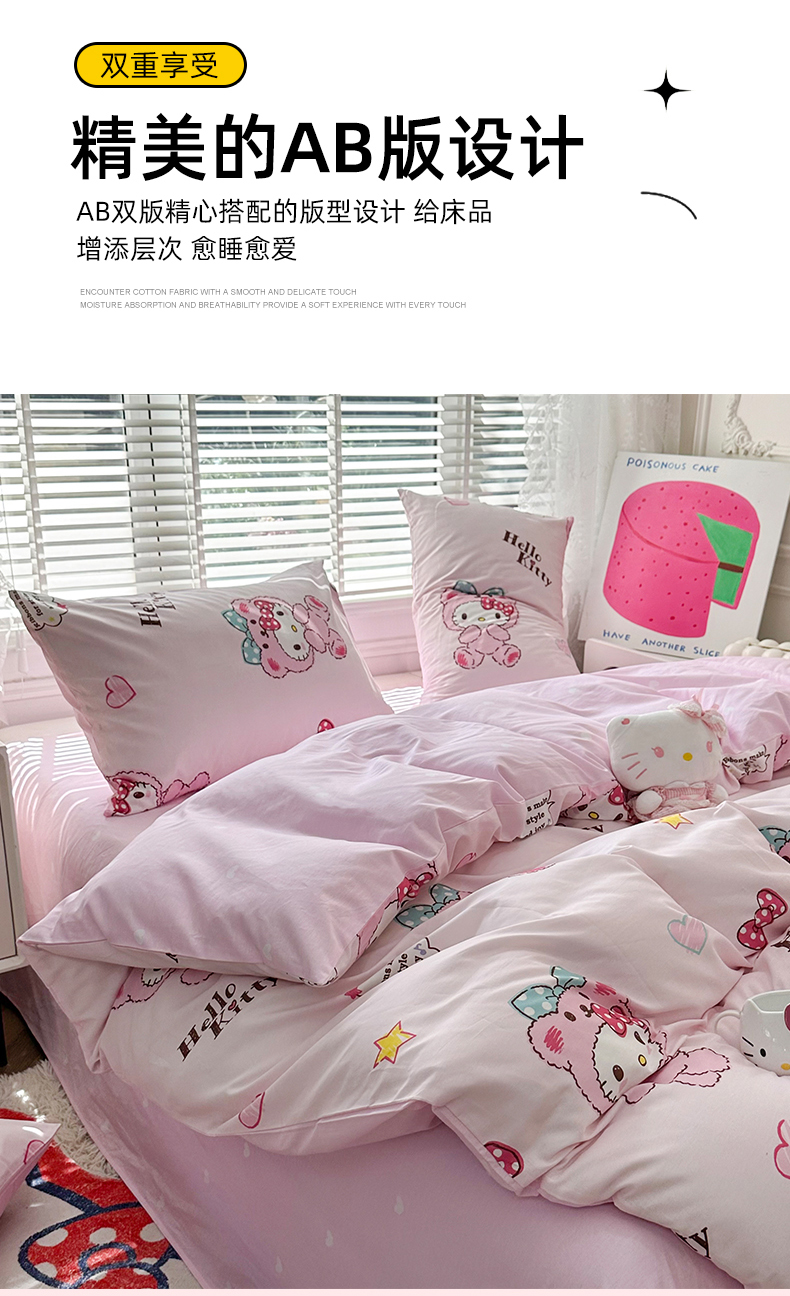 当前位置: 91家纺网 > 商品网购 > 床品套件 > 四件套 > 全棉普通四件套 > 玉元坊 2026新款正版授权三丽鸥系列全棉纯棉床单四件套学生三件套-凯蒂猫系列 babyKT【简约款】